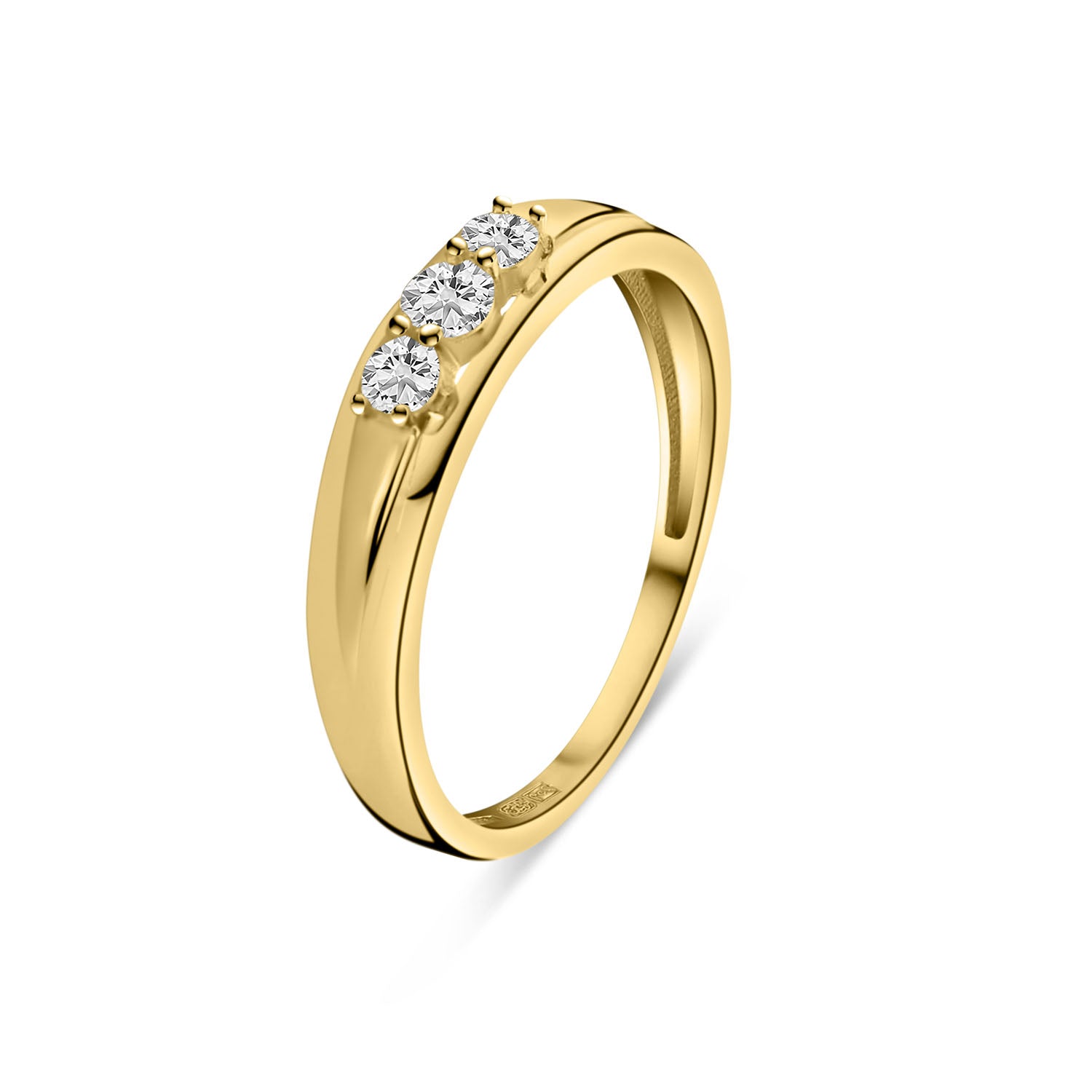 Inel din aur galben cu zirconiu din colectia Gold by Siebel. Realizat din aur galben de 14 karate, inelul prezinta trei zirconii. Combina inelul cu alte bijuterii din colectie pentru a completa aspectul.