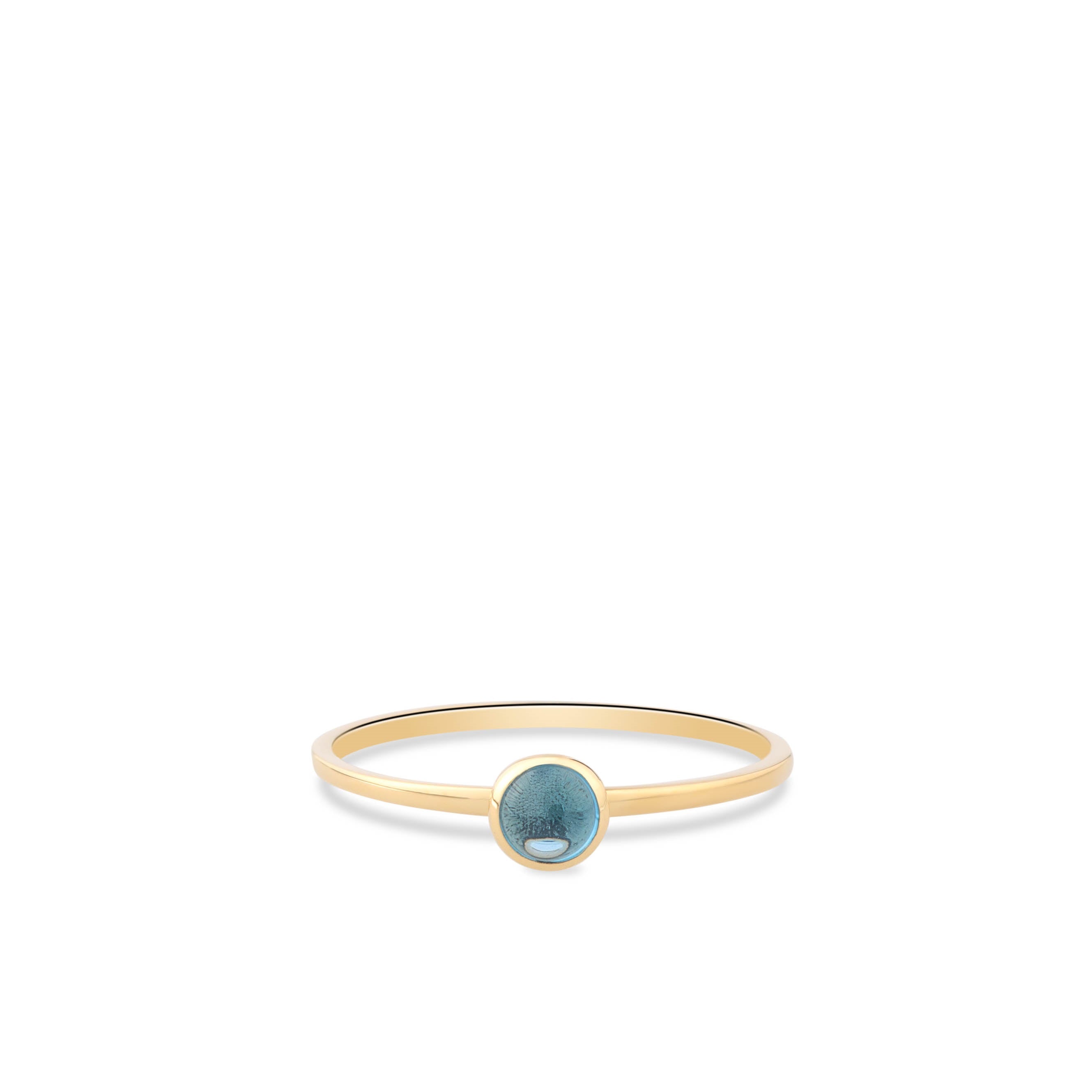 Acest inel suprapunabil face parte din colectia Swing Jewels. Realizat din aur galben de 14 karate, este decorat cu o superba piatra de zirconiu albastra taiata cu cabochon. Piatra are un diametru de 4,9 mm si un finisaj lustruit. Combina si asorteaza inelele din colectia Swing Jewels!