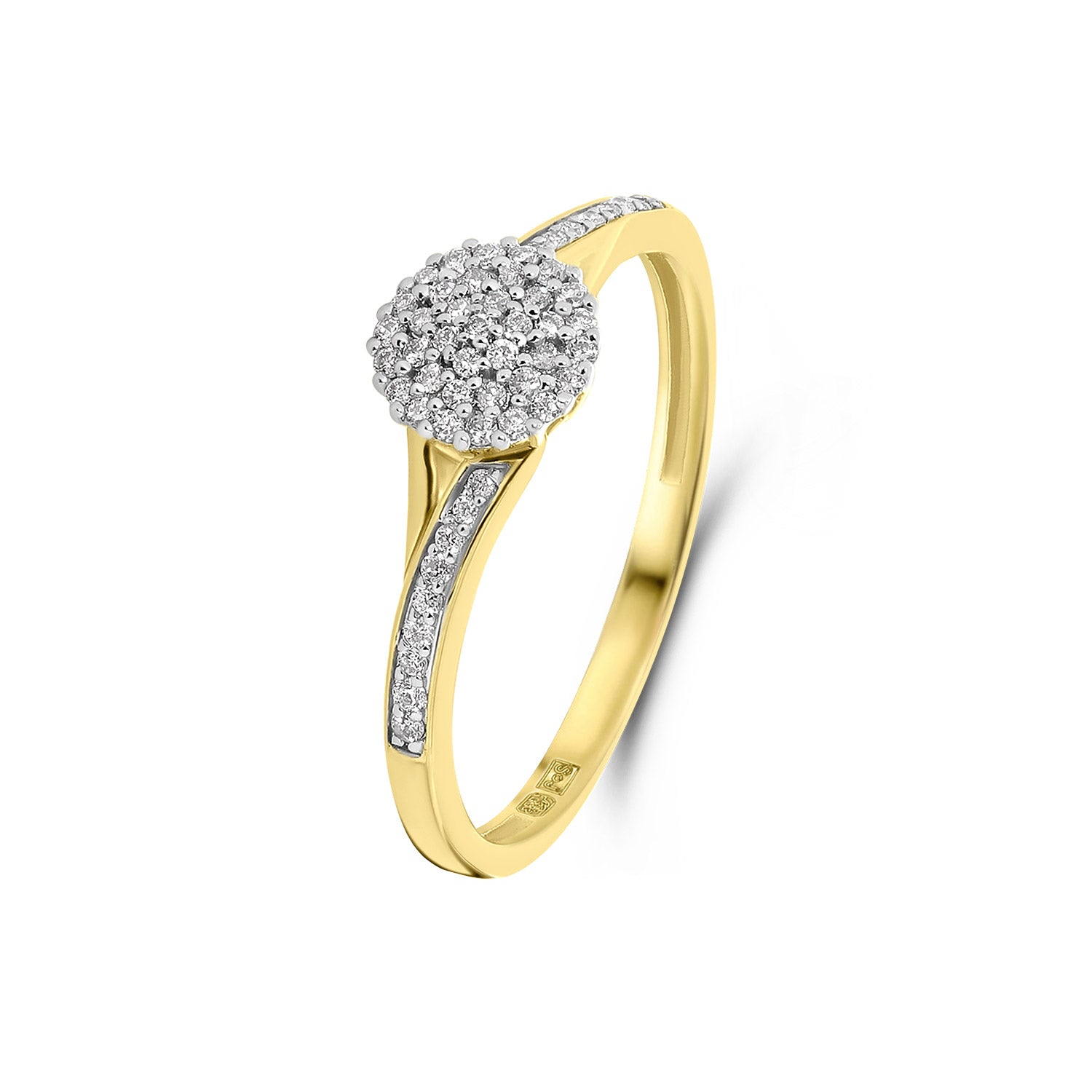 Inel din aur galben cu diamante din colectia Diamonds by Siebel. Fabricat din aur galben de 14 karate, inelul este sertat cu 55 de diamante stralucitoare. Asorteaza-l cu alte piese din colectie.