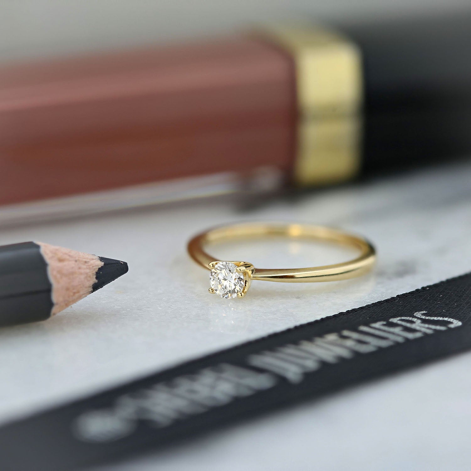 Inel din aur galben din colectia Millennium. Fabricat din aur galben de 14 karate, inelul este sertat cu un diamant cultivat in laborator taiat stralucitor.