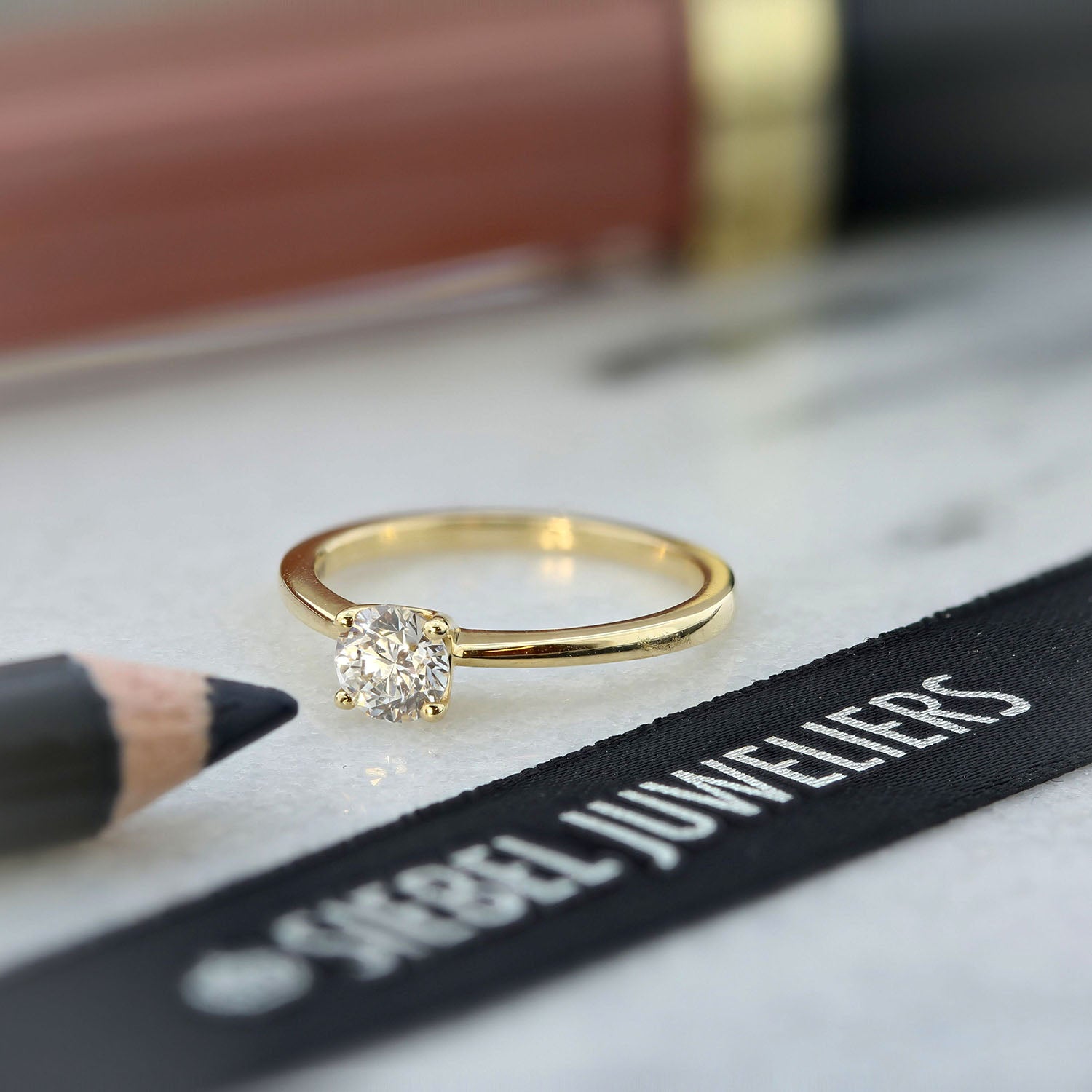 Inel din aur galben din colectia Millennium. Fabricat din aur galben de 14 karate, inelul este sertat cu un diamant cultivat in laborator taiat stralucitor.