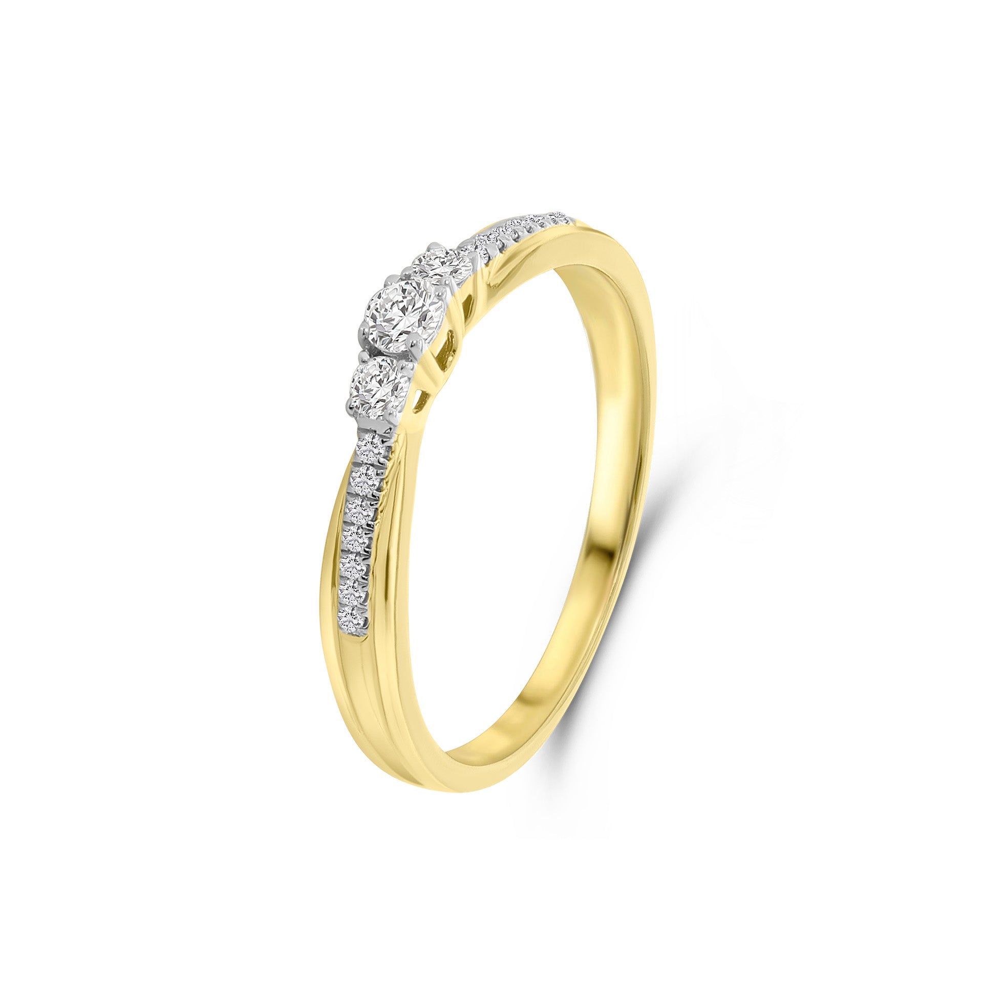 Acest inel este din colectia Millennium. Fabricat din aur galben de 14 karate, are 17 diamante taiate stralucitor, cultivate in laborator, in valoare totala de 0,19 ct. Inelul cantareste 2,08 grame. Imbina acest inel cu alte piese din colectie.