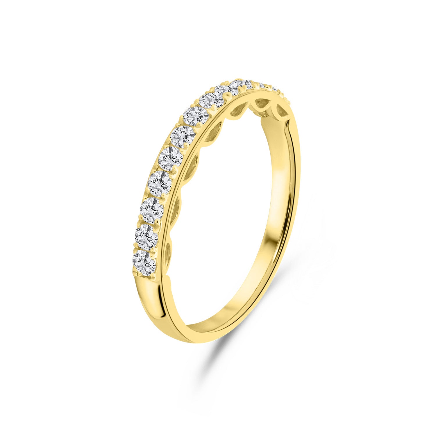 Inel din aur galben cu diamante cultivate in laborator din colectia Millennium. Fabricat din aur galben de 14 karate, acest inel este sertat cu 13 diamante uimitoare, taiate stralucitor, cultivate in laborator. Asociati acest inel cu alte bijuterii din colectie.
