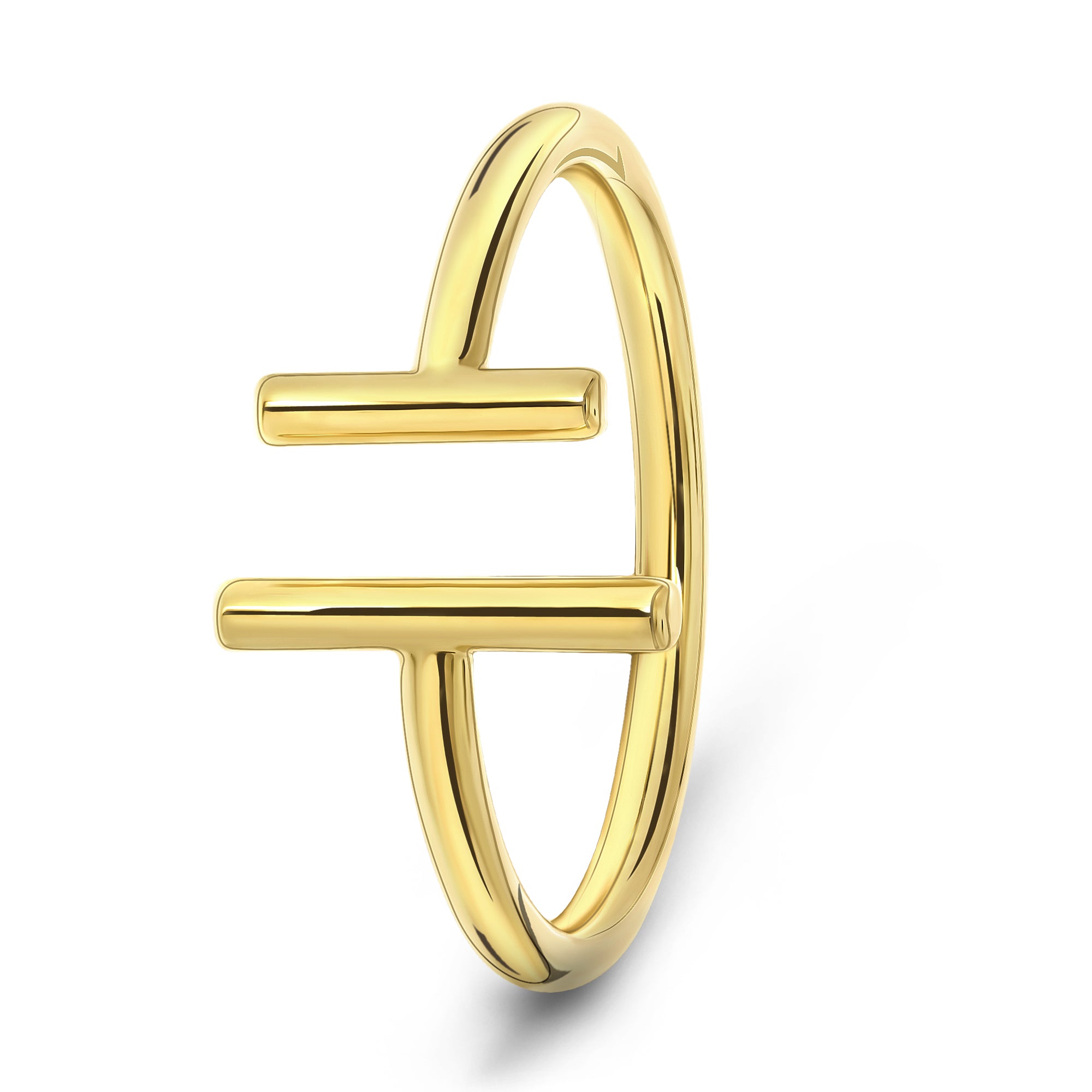 Inel din aur galben de 14 karate din colectia Gold by Siebel. Inelul este deschis la mijloc si are cate o bara pe ambele parti.