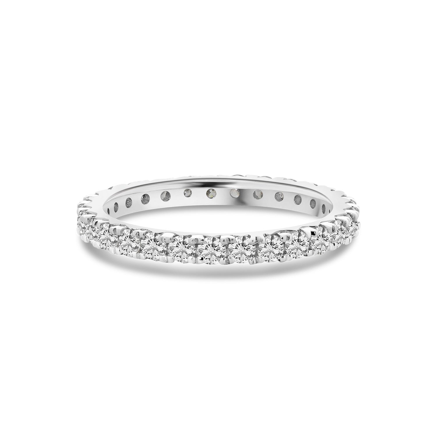 Inel eternitate din aur alb cu diamante cultivate in laborator din colectia Millennium. Fabricat din aur alb de 14 karate, inelul este sertat cu 25 de diamante uimitoare, taiate in forma stralucitoare, cultivate in laborator, care sunt fixate pe intreaga banda, creand o stralucire uimitoare. Acest inel eternity este ideal pentru asocierea cu un inel solitar.