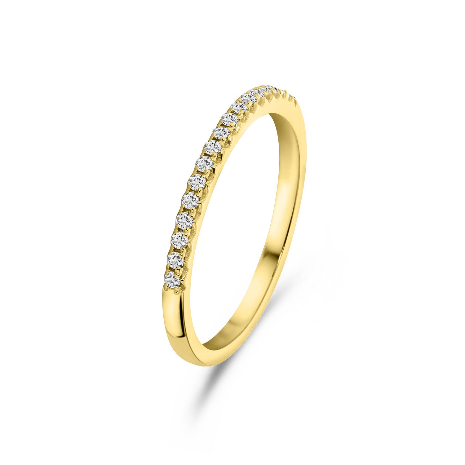 Inel din aur galben cu diamante din colectia Memoire. Fabricat din aur galben de 14 karate, inelul este sertat cu 17 diamante uimitoare taiate stralucitor. Se asorteaza frumos cu alte inele din colectie.