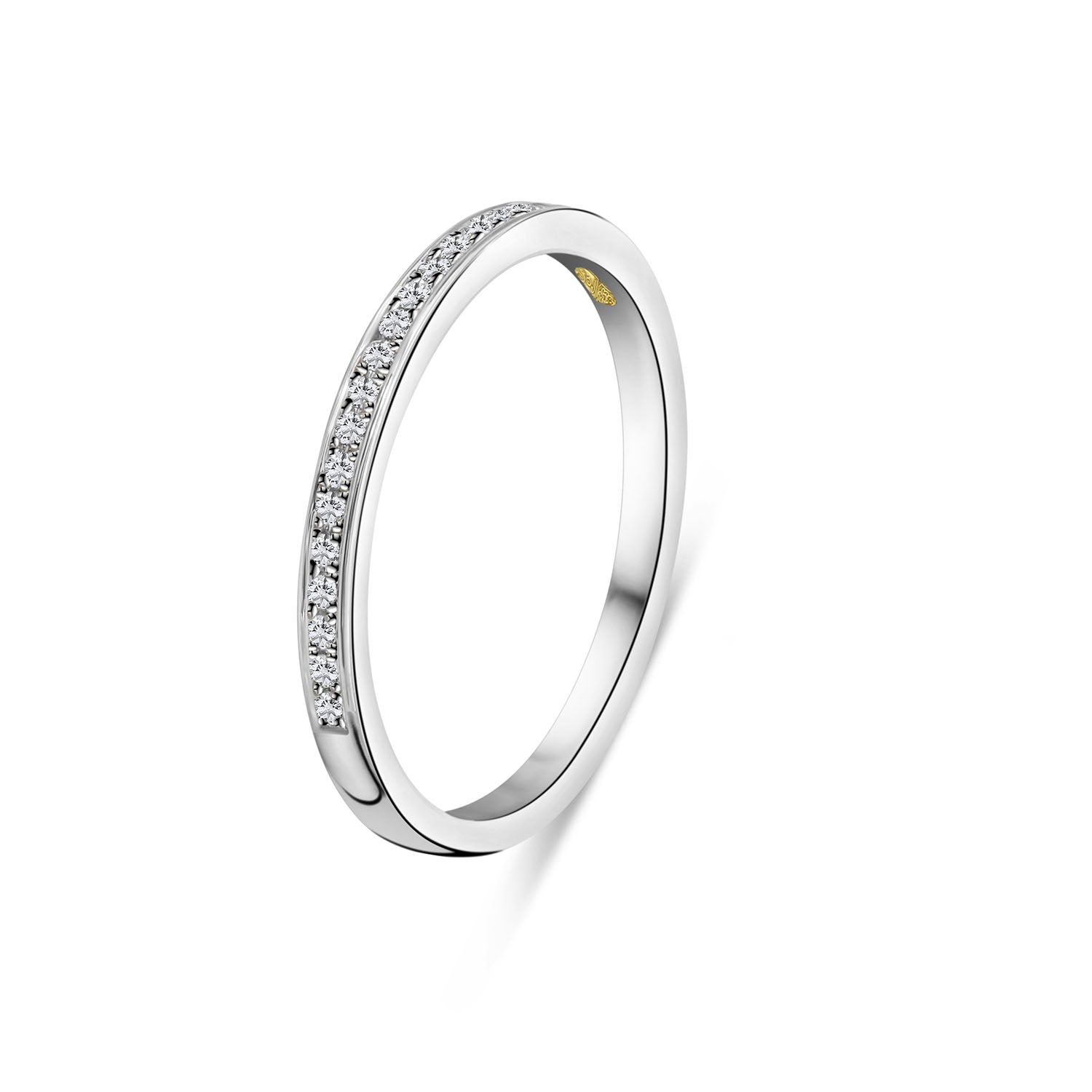 Inel din aur alb de 14 karate din colectia Valentina. Inelul este sertat cu 20 de diamante de aproximativ 0,10 ct.