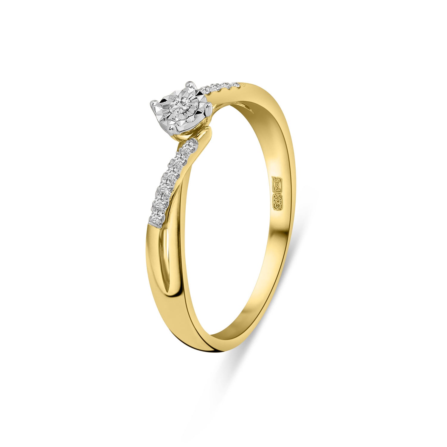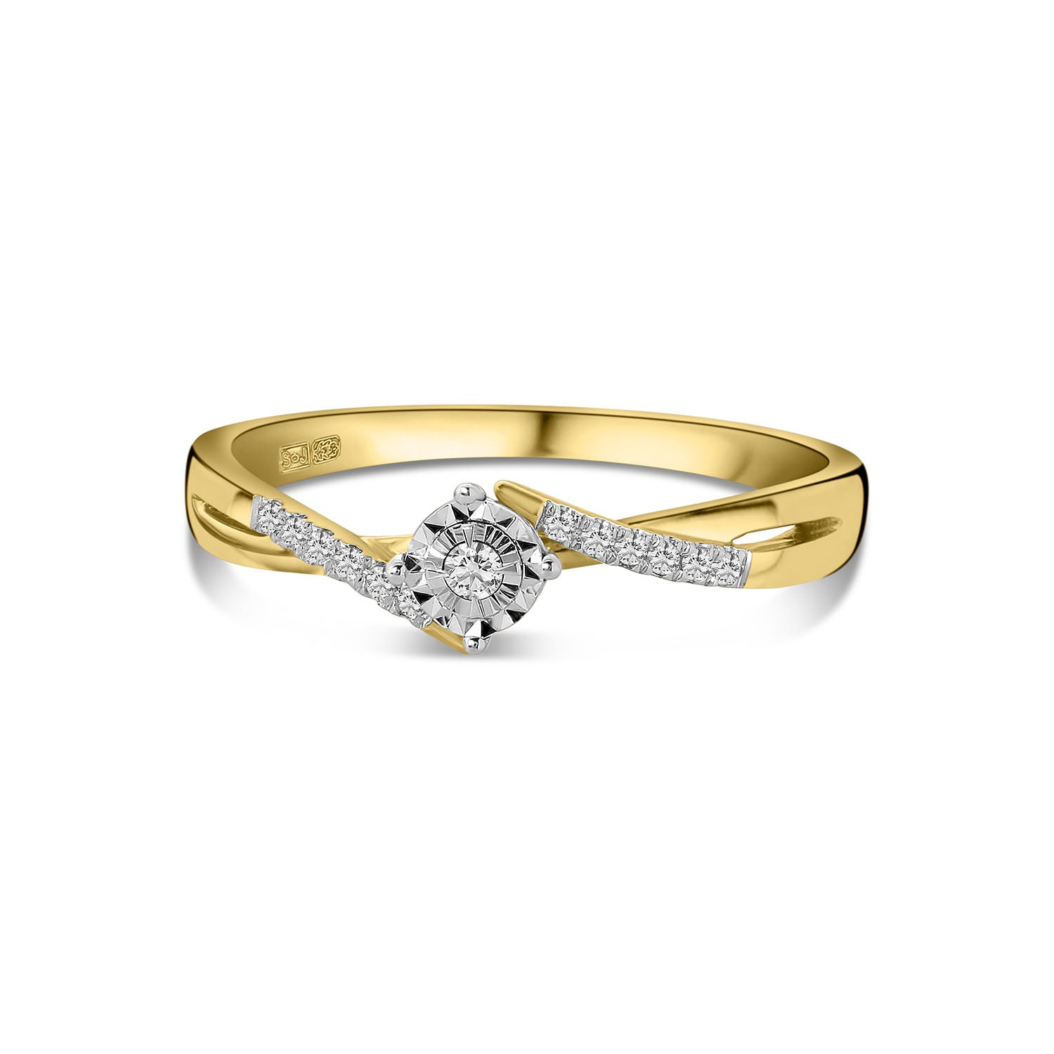 Inel din aur galben de 14 karate din colectia Miracle. Inelul prezinta 13 diamante intr-o montura din aur alb.