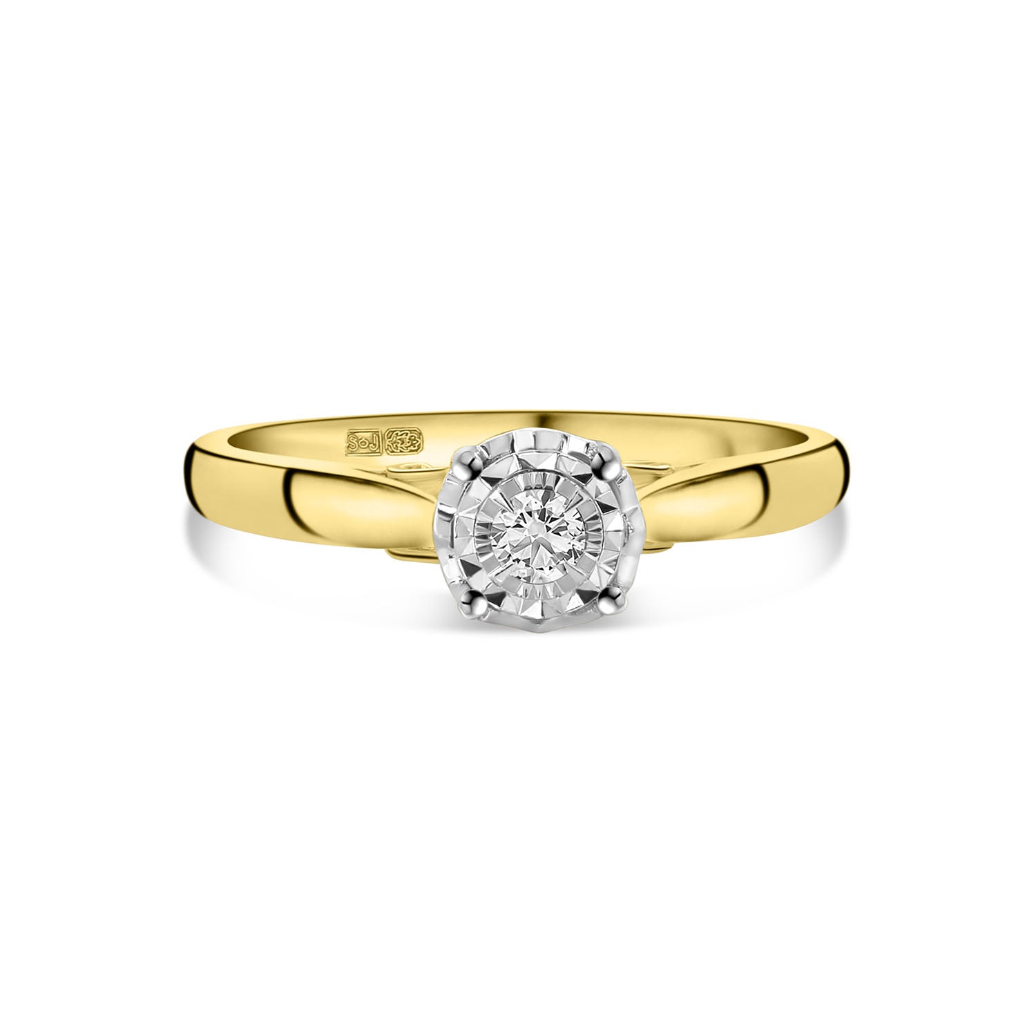 Un inel din aur galben de 14 karate din colectia Miracle. Inelul prezinta un diamant intr-o montura de aur alb.
