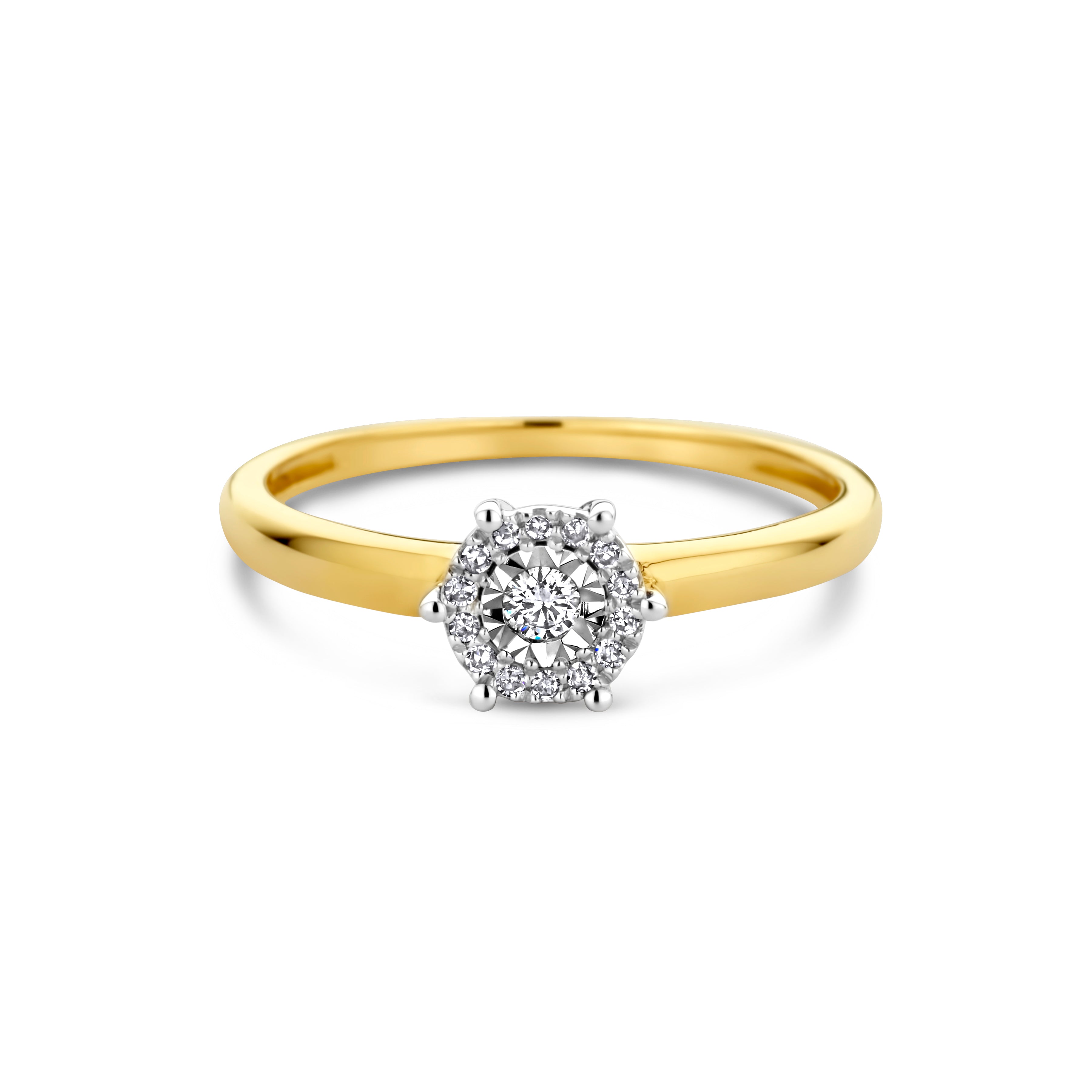 Inel din aur galben cu diamante din colectia Miracle. Fabricat din aur galben de 14 karate, inelul este sertat cu 15 diamante uimitoare taiate stralucitor. Asociati-l cu alte piese din colectie pentru a va completa look-ul.