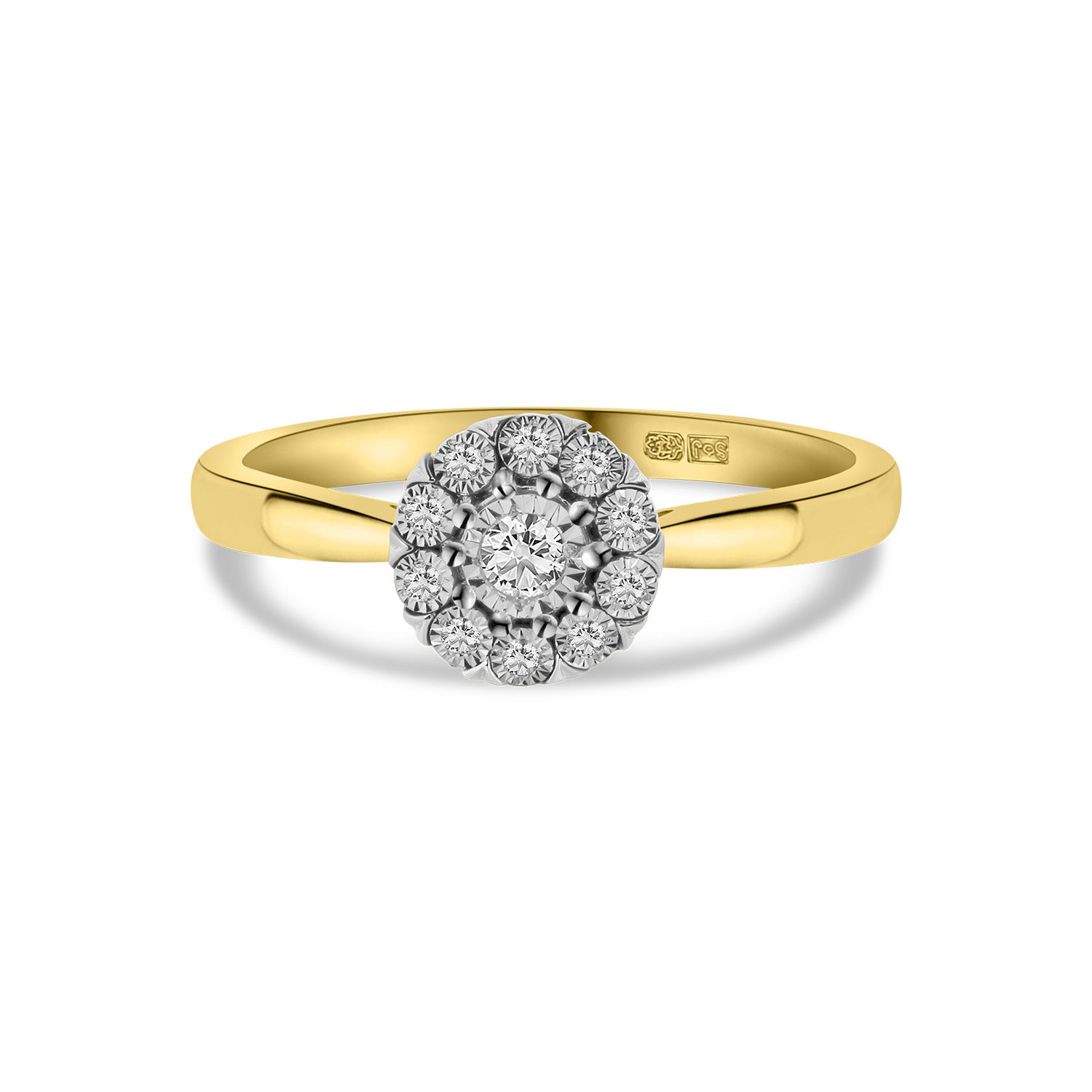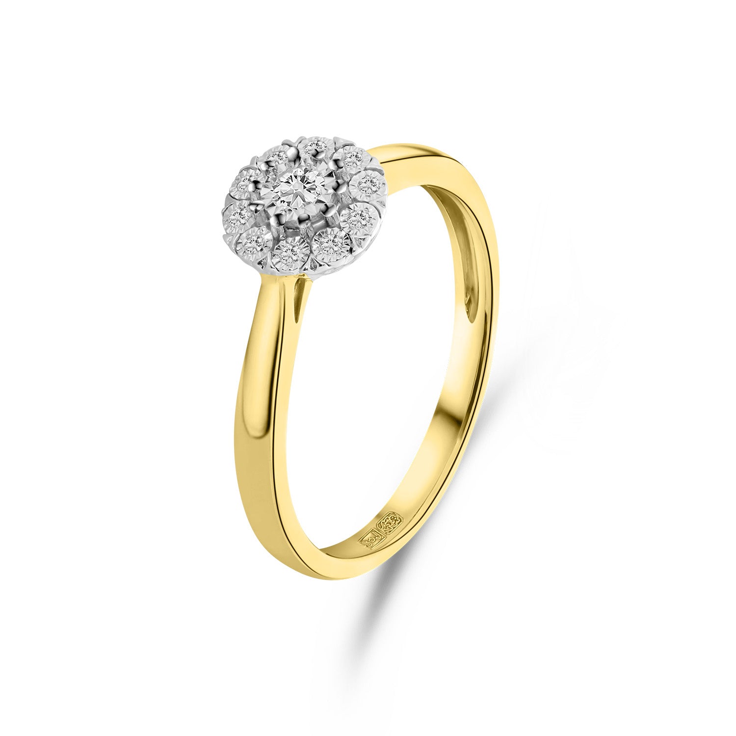 Inel din aur galben cu diamante din colectia Miracle. Fabricat din aur galben de 14 karate, inelul este sertat cu 11 diamante uimitoare taiate stralucitor. Diamantele sunt montate intr-o montura de aur alb. Asociati acest inel cu alte bijuterii din colectie.