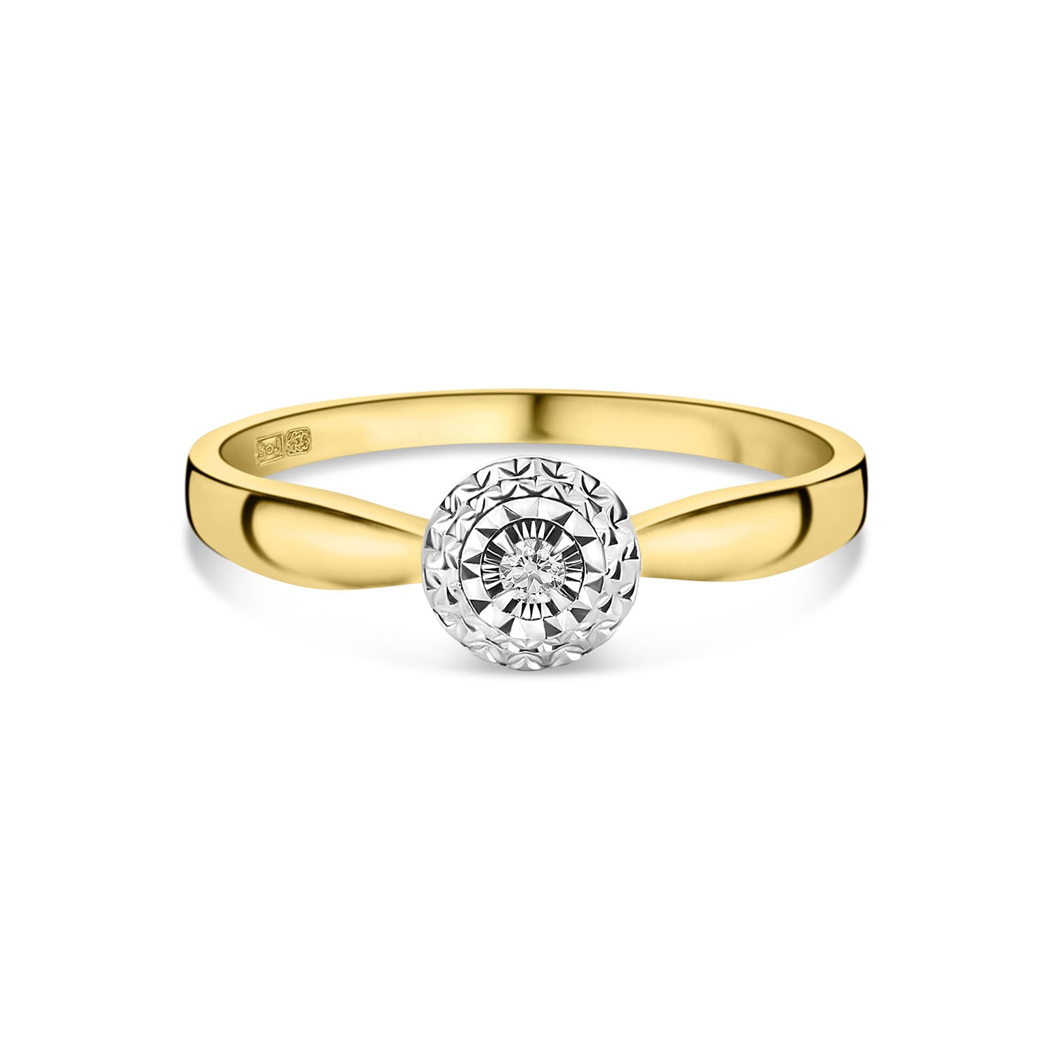 Inel din aur galben cu un diamant minune din colectia Miracle. Fabricat din aur galben de 14 karate, inelul prezinta un diamant uimitor taiat stralucitor intr-o montura de aur alb. Asociati inelul cu bijuterii asortate din colectie pentru a va completa look-ul.