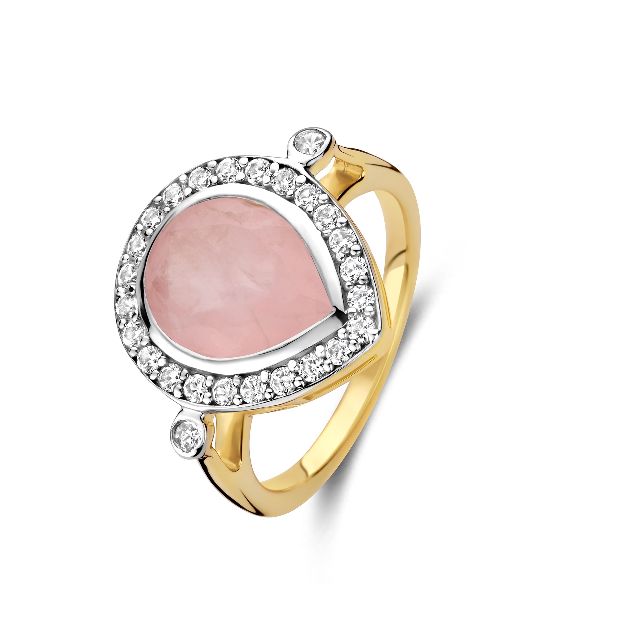 Acest inel rafinat din colectia Caramel de la Salvatore Plata este o adevarata declaratie de eleganta si delicatete. Realizat din argint sterling placat cu aur 925, designul prezinta o frumoasa piatra de cuart roz in forma de para, incadrata de zirconiu cubic alb, taiat briliant, incrustat pentru un plus de stralucire si contrast. Un accent suplimentar de zirconiu cubic straluceste de o parte si de alta a pietrei centrale, conferind inelului un echilibru armonios. Cuartul roz este cunoscut drept piatra iubirii si a compasiunii. Cu stralucirea sa moale, rozalie, aceasta piatra emana liniste, tandrete si vindecare emotionala - perfecta pentru cei care cauta sa combine frumusetea cu sensul. O bijuterie romantica cu caracter, perfecta de purtat individual sau in combinatie cu alte piese din colectia Caramel.