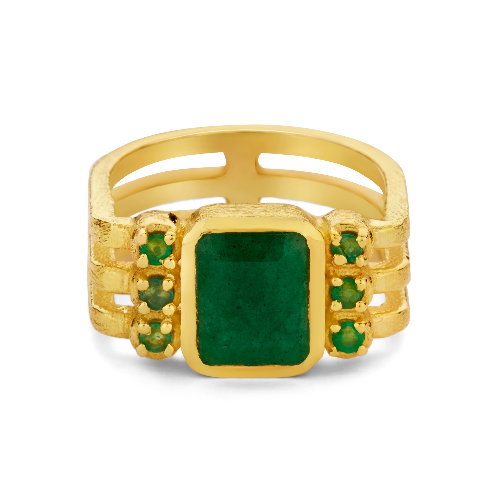 Adauga o nota de eleganta colectiei tale de bijuterii cu acest frumos inel placat cu aur de la Salvatore Plata. Fabricat din argint 925 si placat cu aur, inelul prezinta un smarald verde dreptunghiular uimitor care atrage imediat privirea. Cunoscut pentru culoarea verde vibranta, smaraldul simbolizeaza renasterea si dragostea si este cunoscut pentru proprietatile sale vindecatoare si de intarire. Asociati acest inel cu alte bijuterii din colectia Salvatore Plata, precum bratari, cercei, sau coliere cu detalii placate cu aur si smaralde verzi, pentru un aspect complet, armonios. Rasfatati-va sau cuiva drag cu acest inel atemporal si bucurati-va de eleganta si splendoarea smaraldului si a argintului placat cu aur.