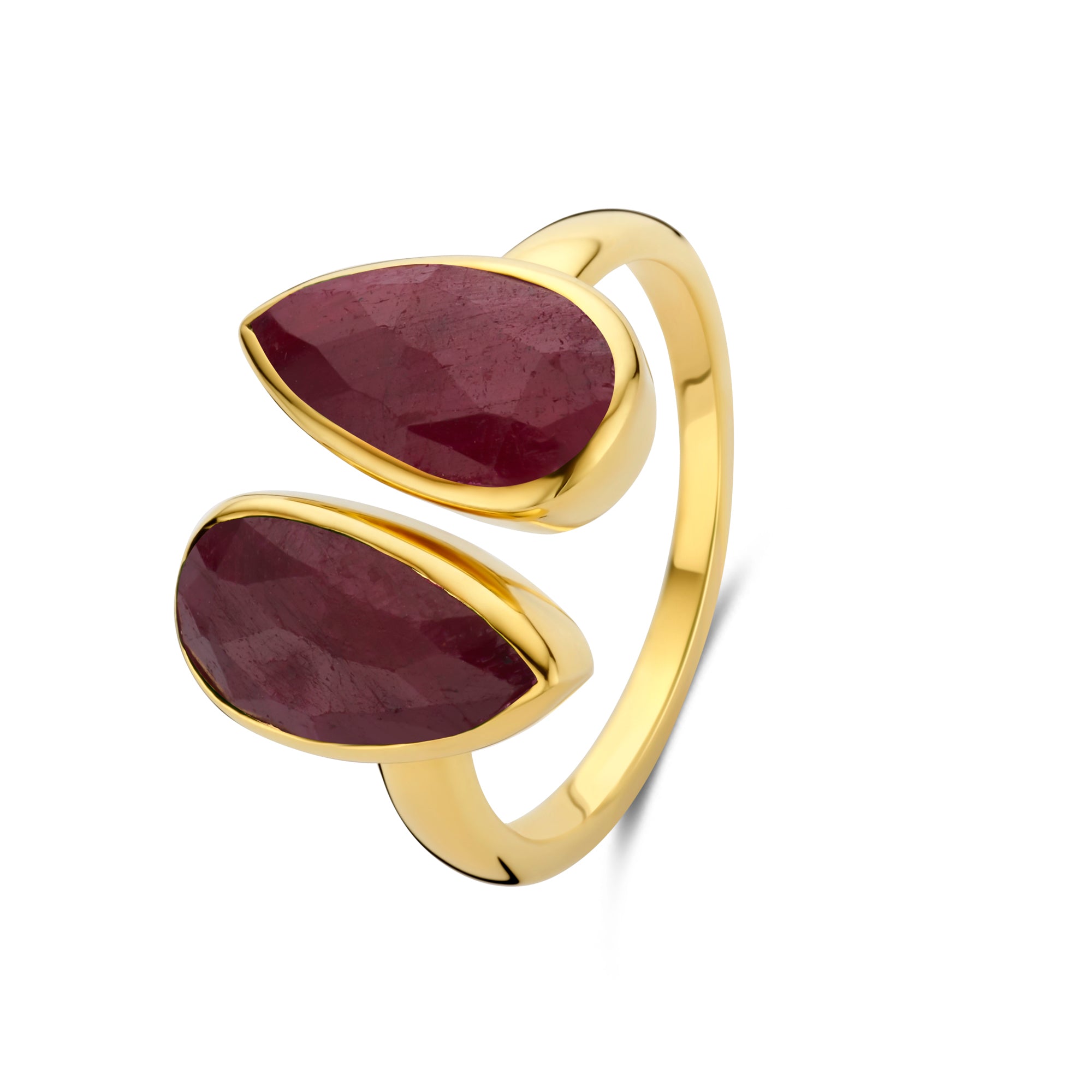 Adauga o nota de eleganta colectiei tale cu acest frumos inel Salvatore. Fabricat din argint sterling si placat cu aur galben, acest inel nu este doar elegant, ci si durabil. Cele doua pietre de rubin rosu in forma de para de 6x12 mm atrag o adevarata ochi. Rubinul este cunoscut pentru culoarea sa profunda si bogata si este adesea asociat cu pasiunea si puterea. Combinatia dintre rubinul stralucitor si finisajul luxos face ca acest inel sa fie perfect atat pentru ocazii speciale, cat si pentru purtarea de zi cu zi.