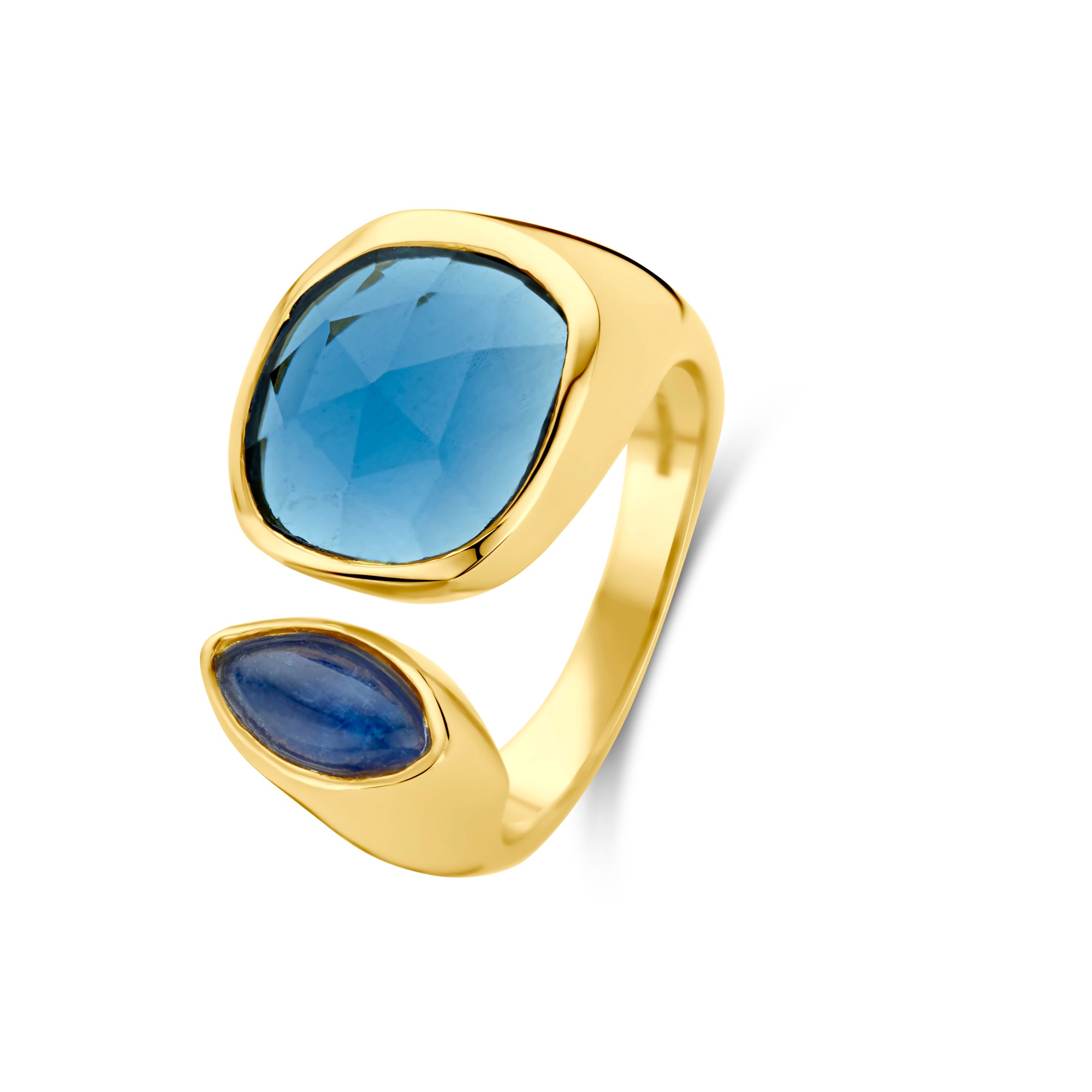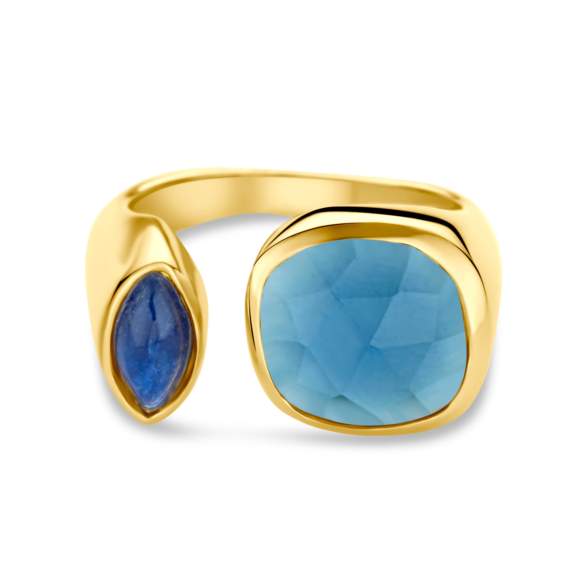 Adauga o declaratie aspectului tau cu acest frumos inel Salvatore Plata. Fabricate din argint 925 si placate cu aur, pietrele colorate din partea de sus a inelului sunt iolit, topaz si larimar. Diversele pietre colorate in diferite forme confera inelului un aspect vintage.