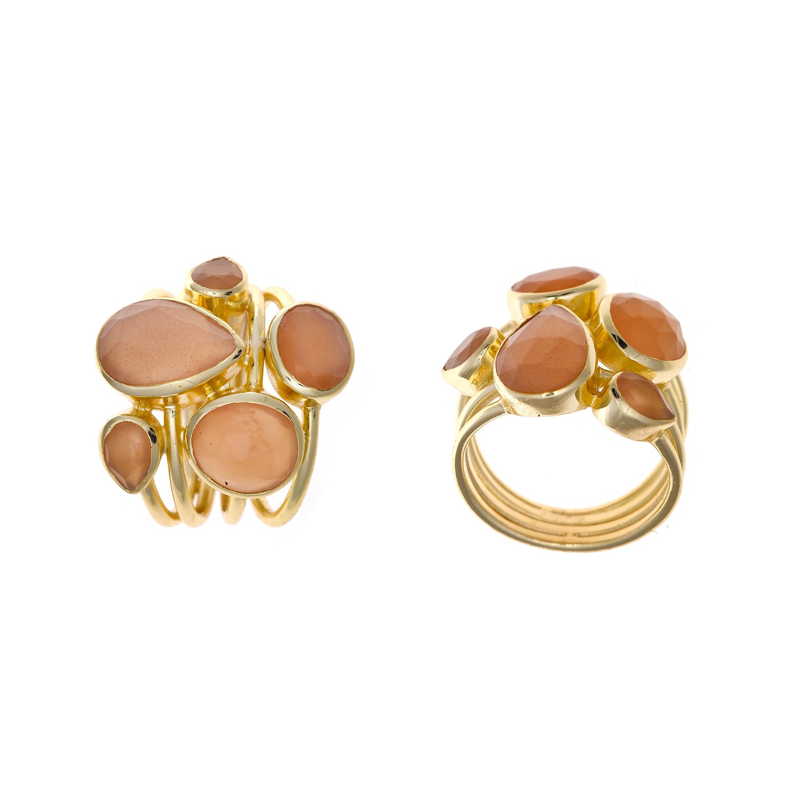 Inel din argint 925 placat cu aur din colectia Salvatore Plata. Inelul este decorat cu cinci pietre lunare portocalii.