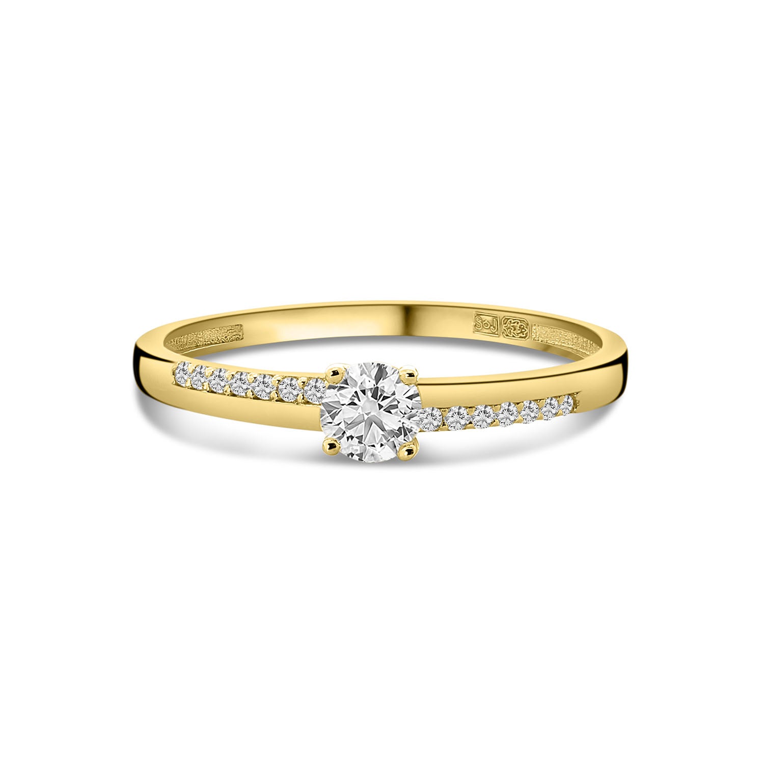 Inel din aur galben cu zirconiu din colectia Sierabelle. Fabricat din aur galben de 14 karate, inelul este sertat cu 15 pietre uimitoare din zirconiu.