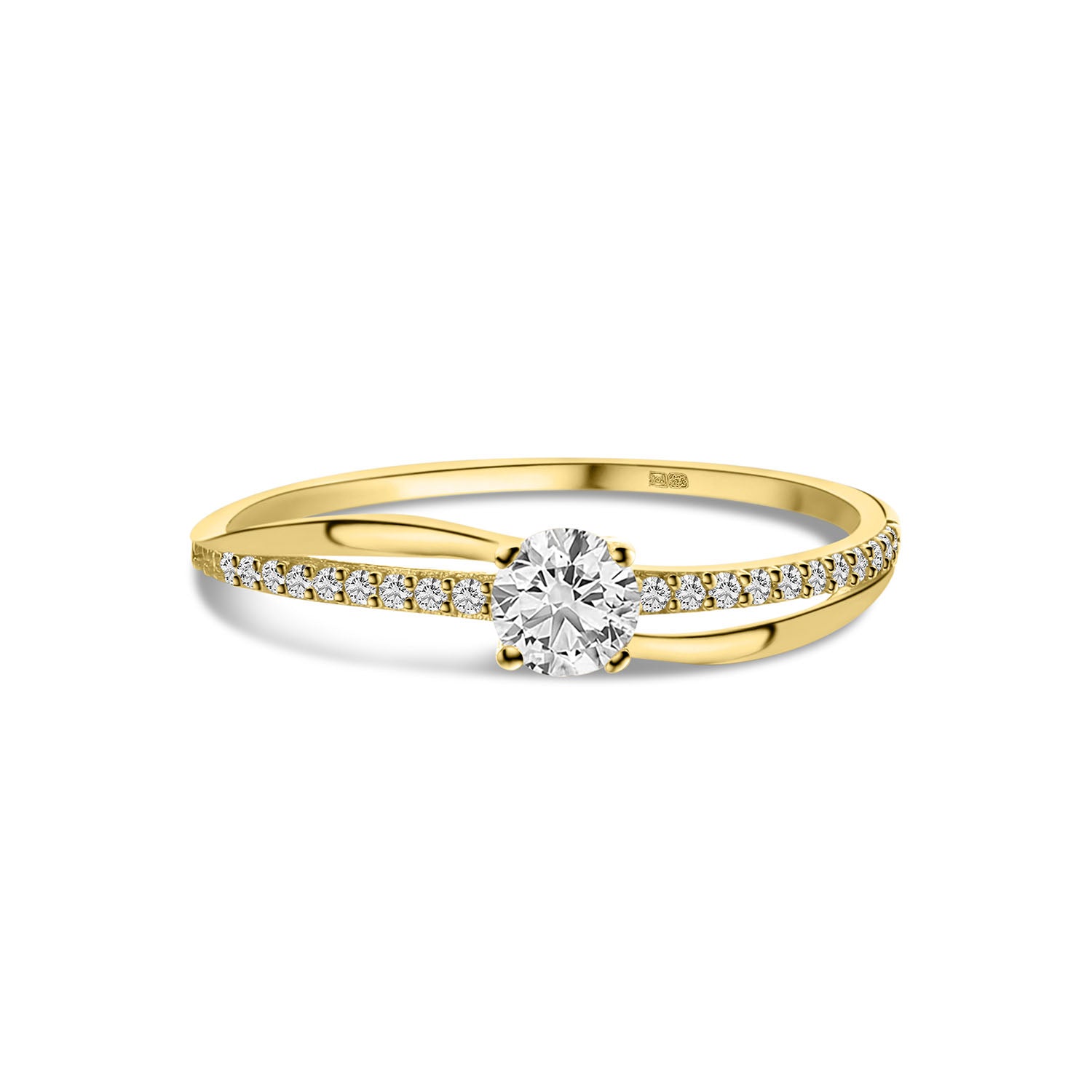 Inel din aur galben din colectia Sierabelle. Confectionat din aur galben de 14 karate, acest inel este sertat cu 23 de pietre de zirconiu. Imbina acest inel cu alte piese din colectie.