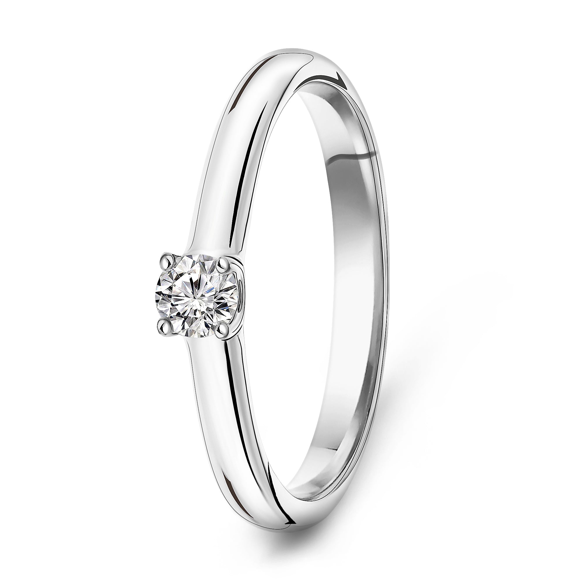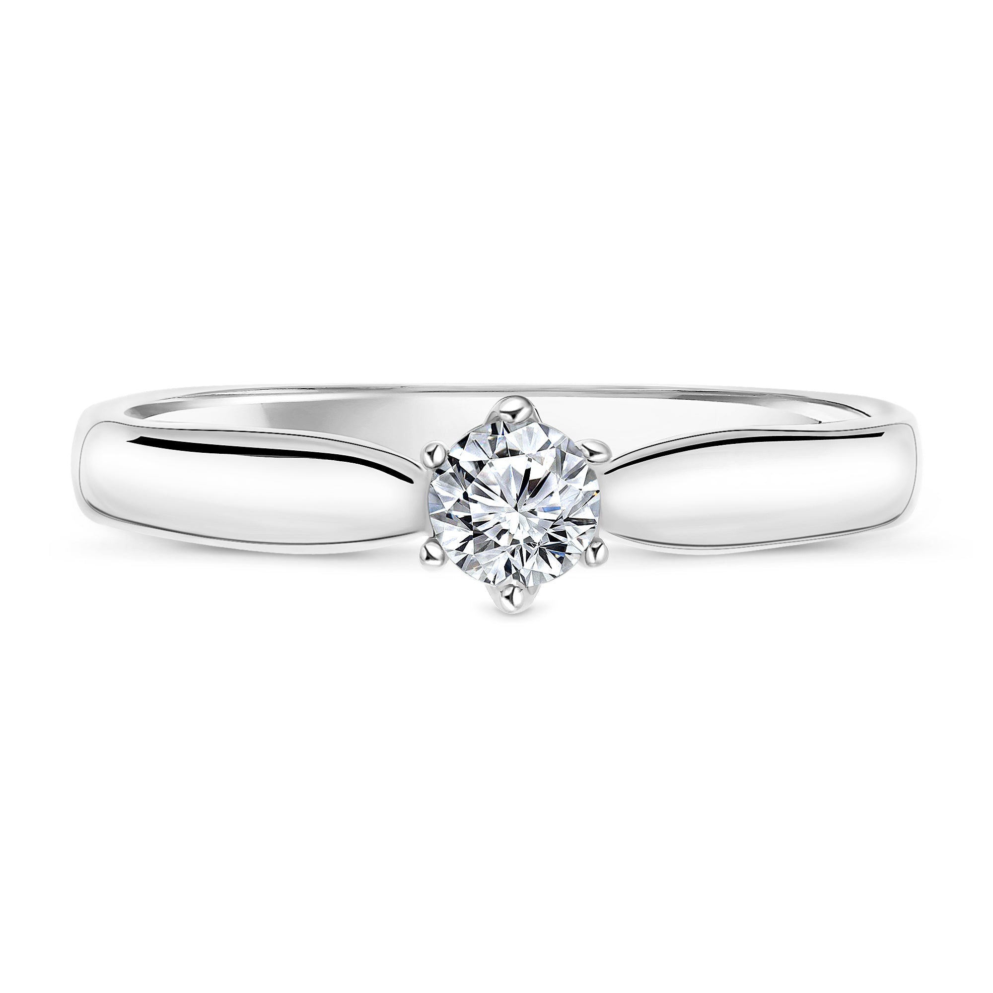 Inel din aur alb cu diamante de 14 karate. Inelul este sertat cu un diamant taiat stralucitor cu o greutate de 0,10 ct.