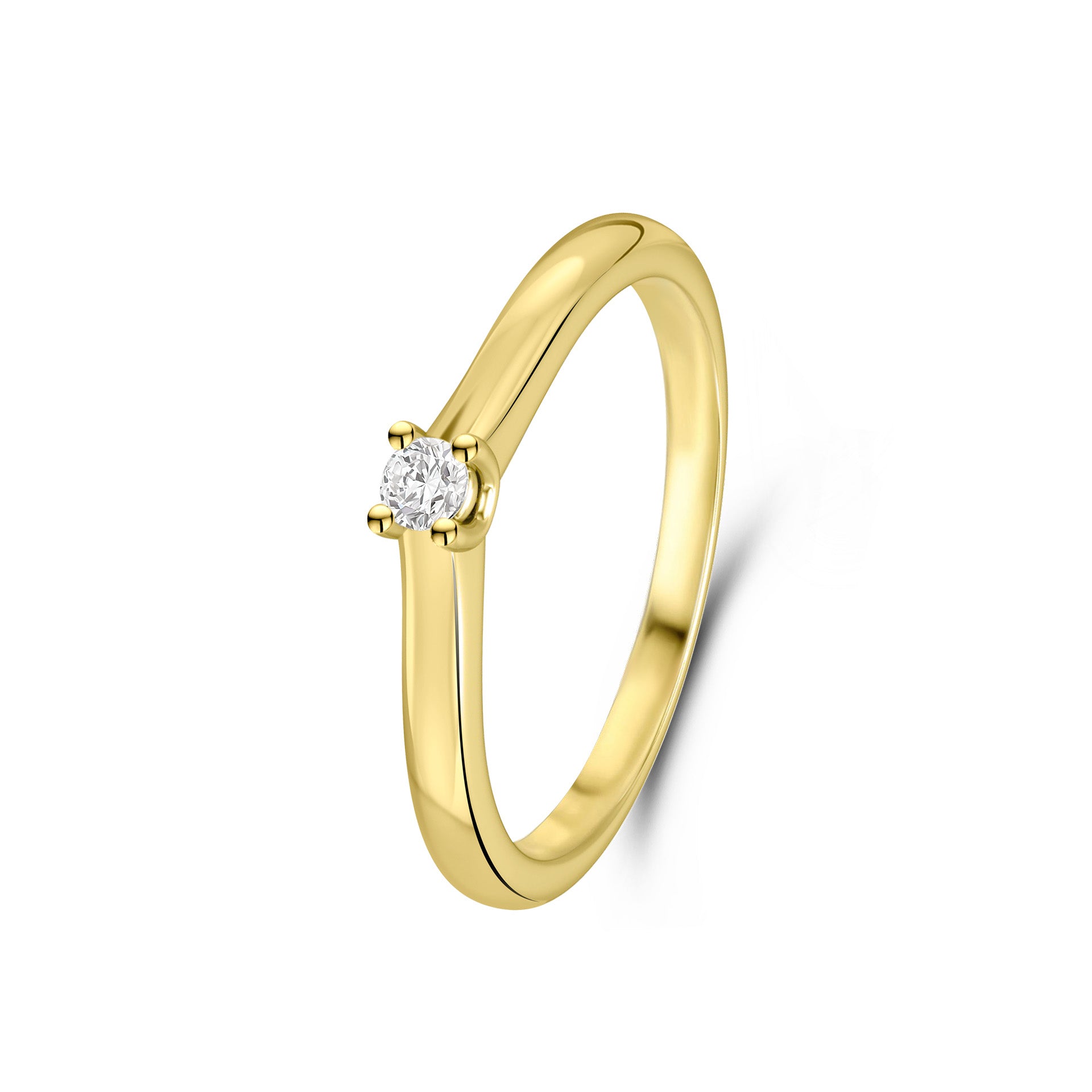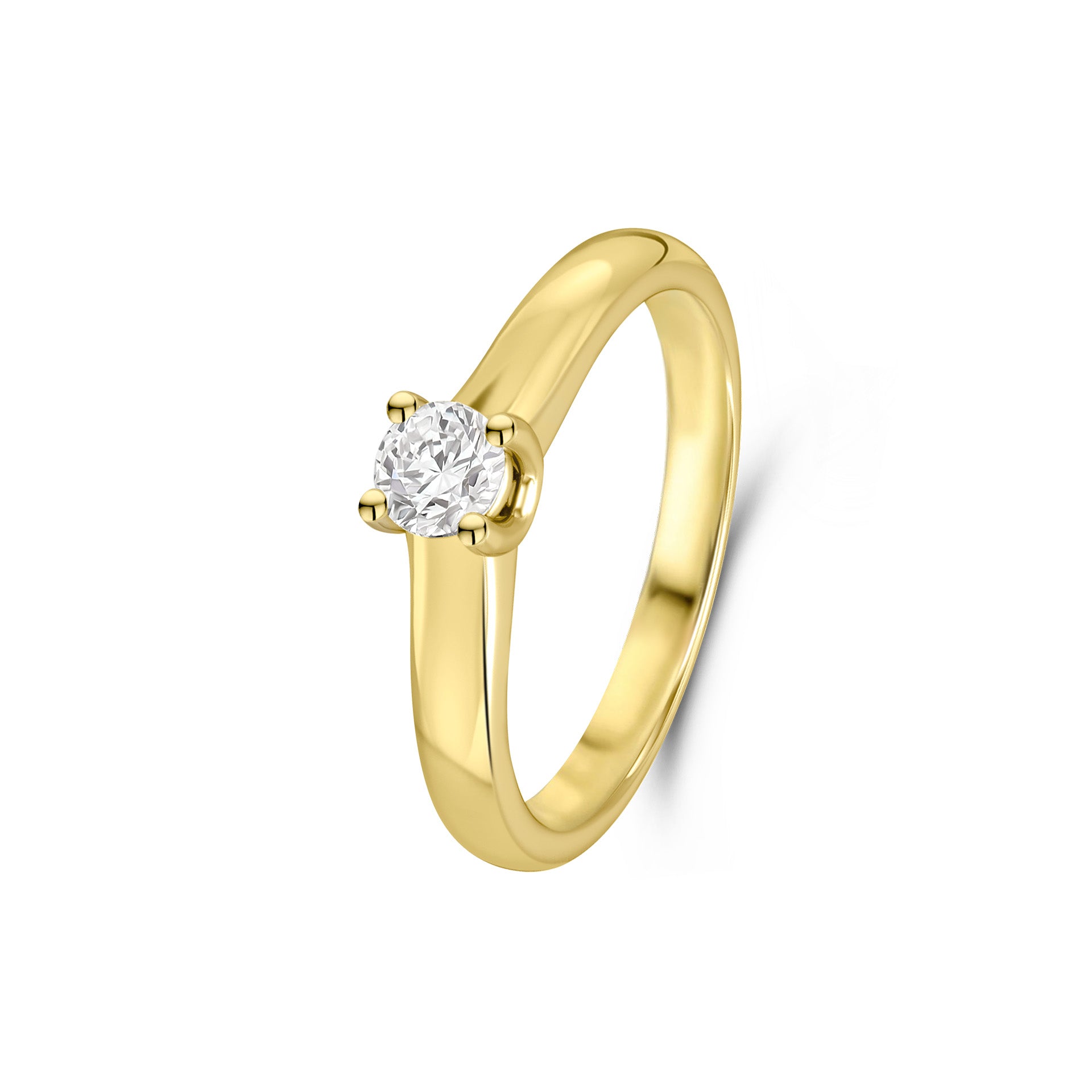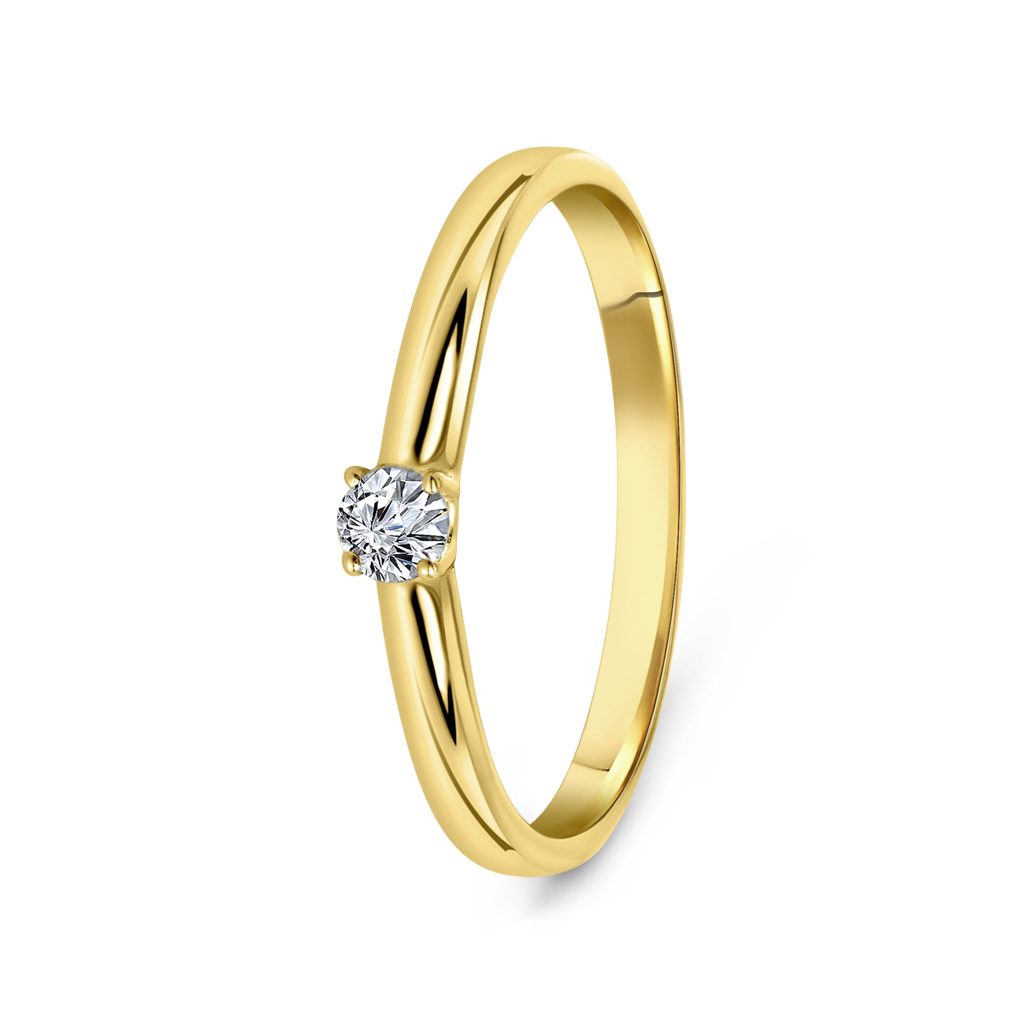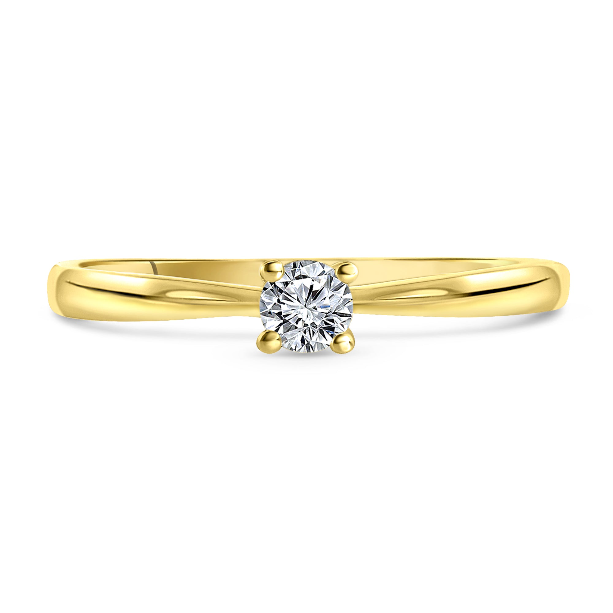 Inel din aur galben de 14 karate cu diamante. Inelul are un diamant taiat stralucitor de 0,25 carate.