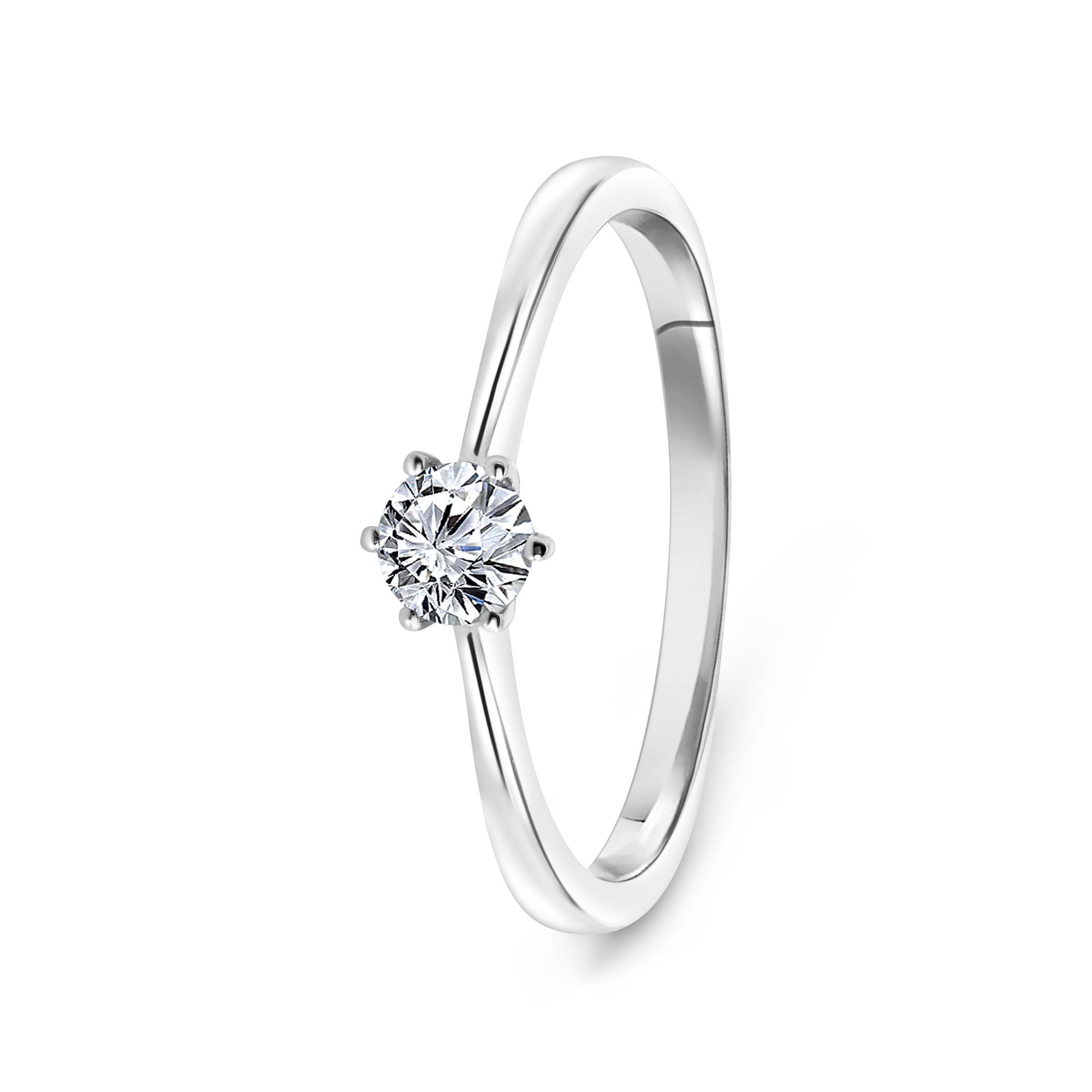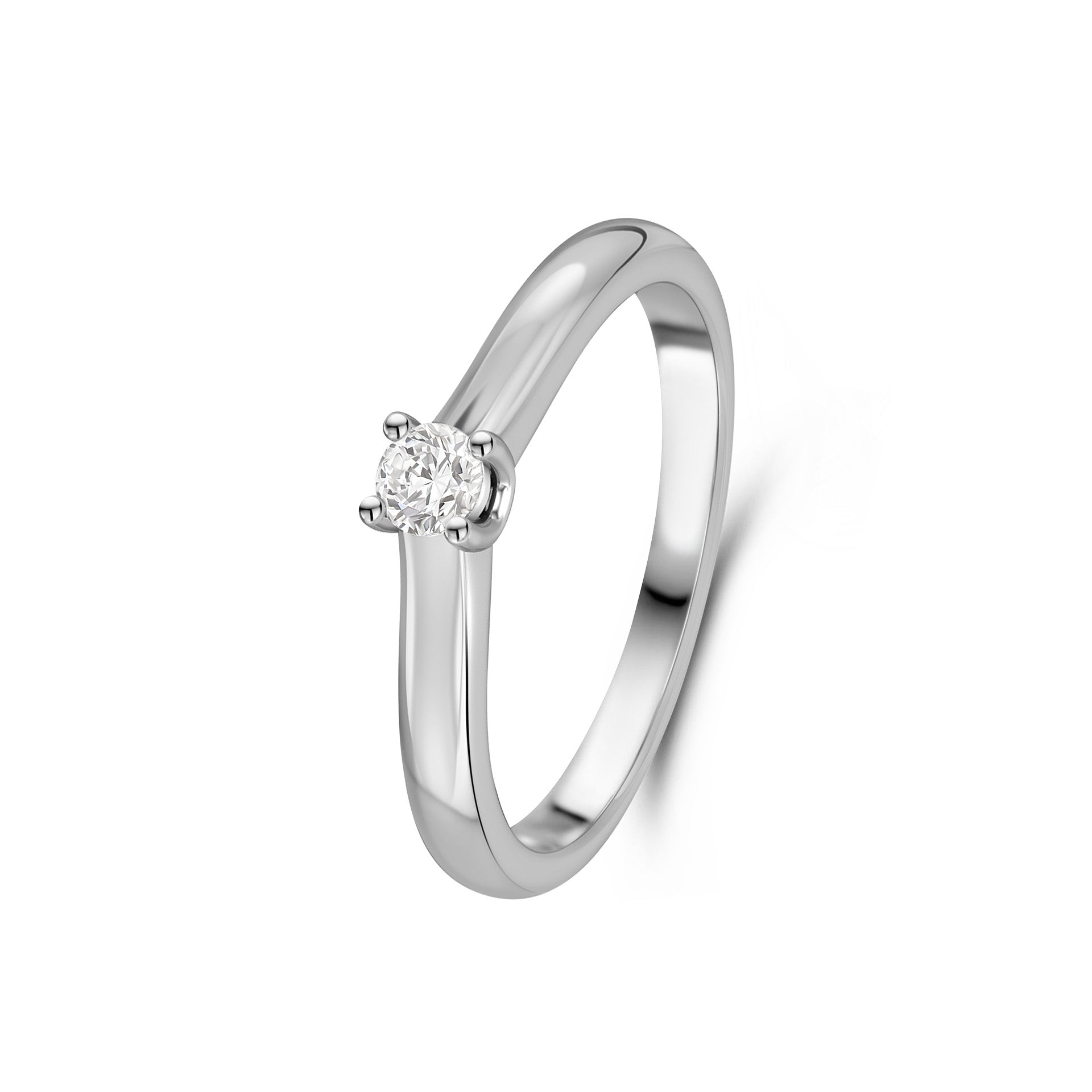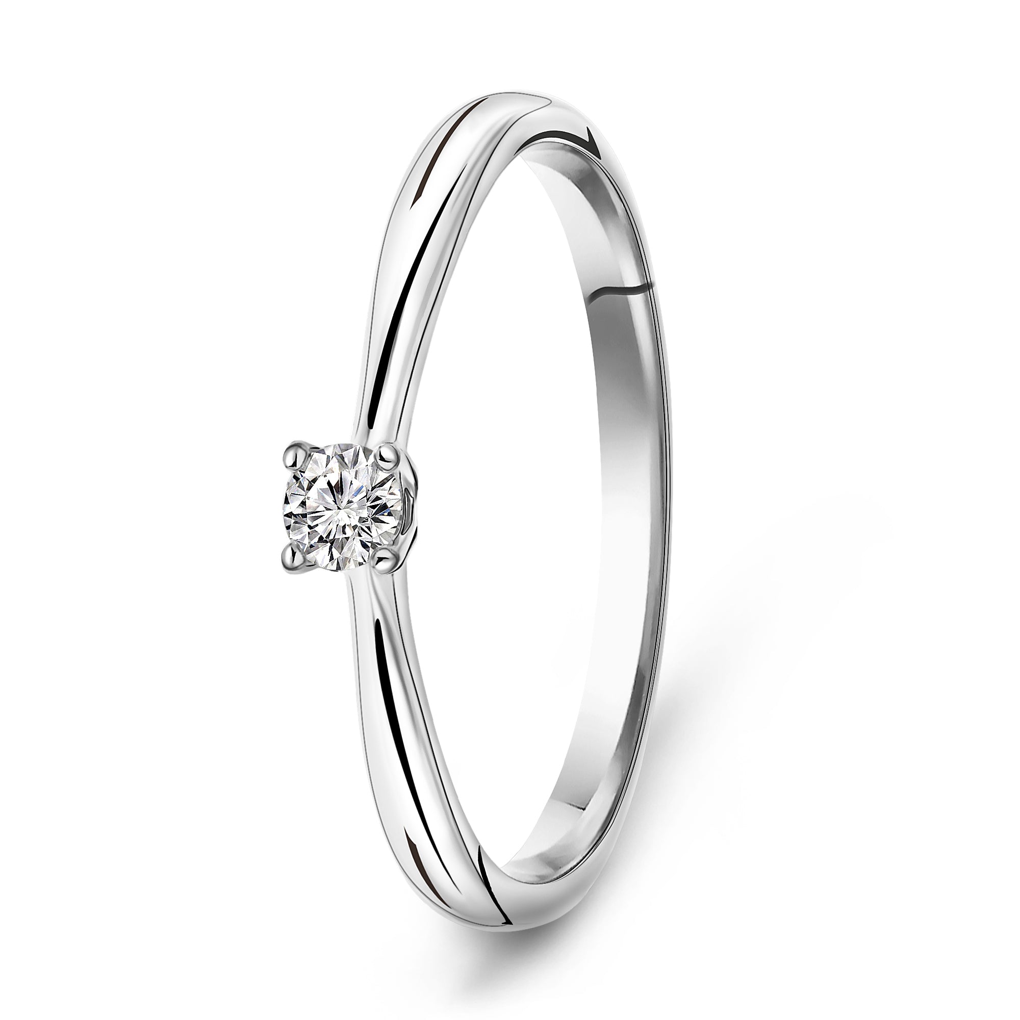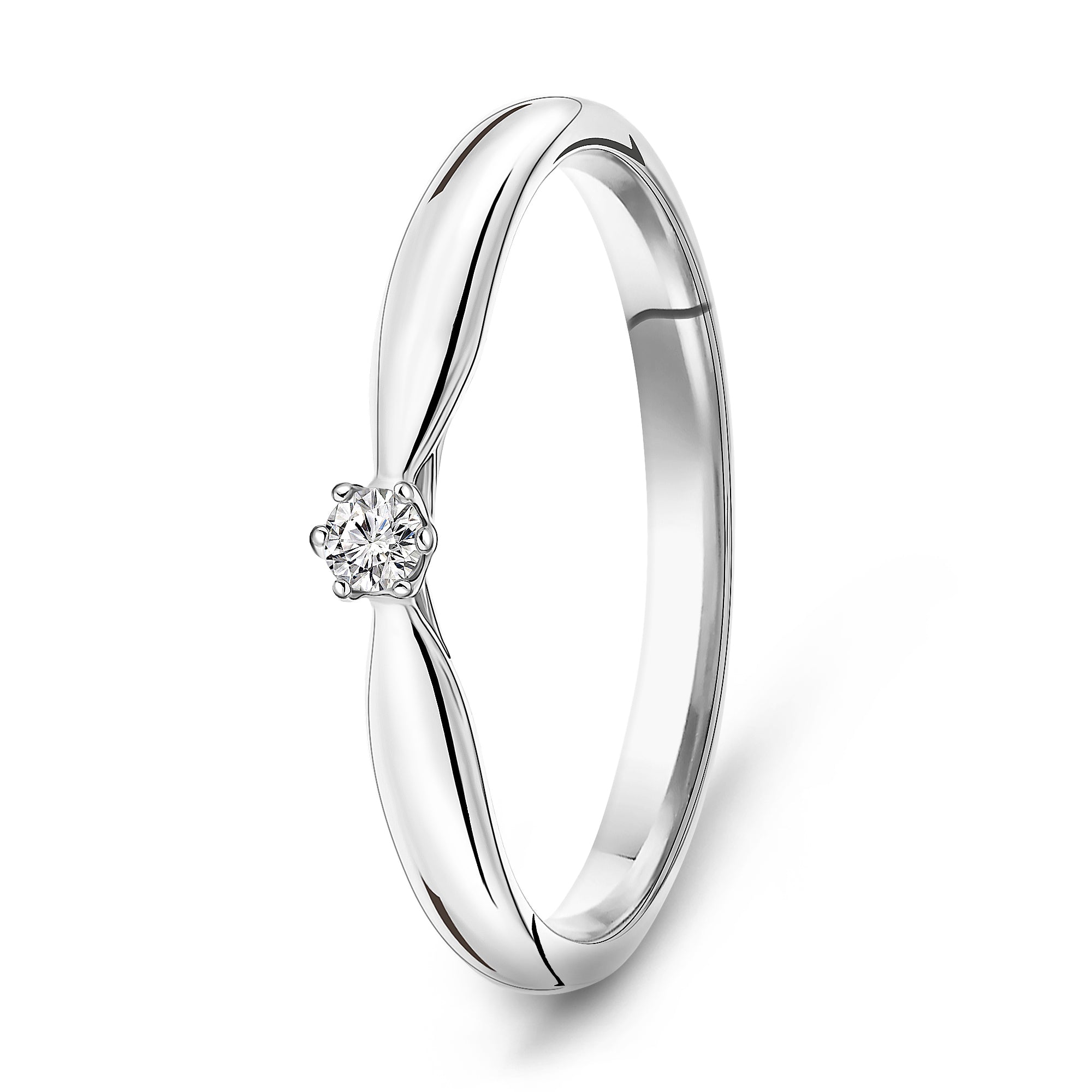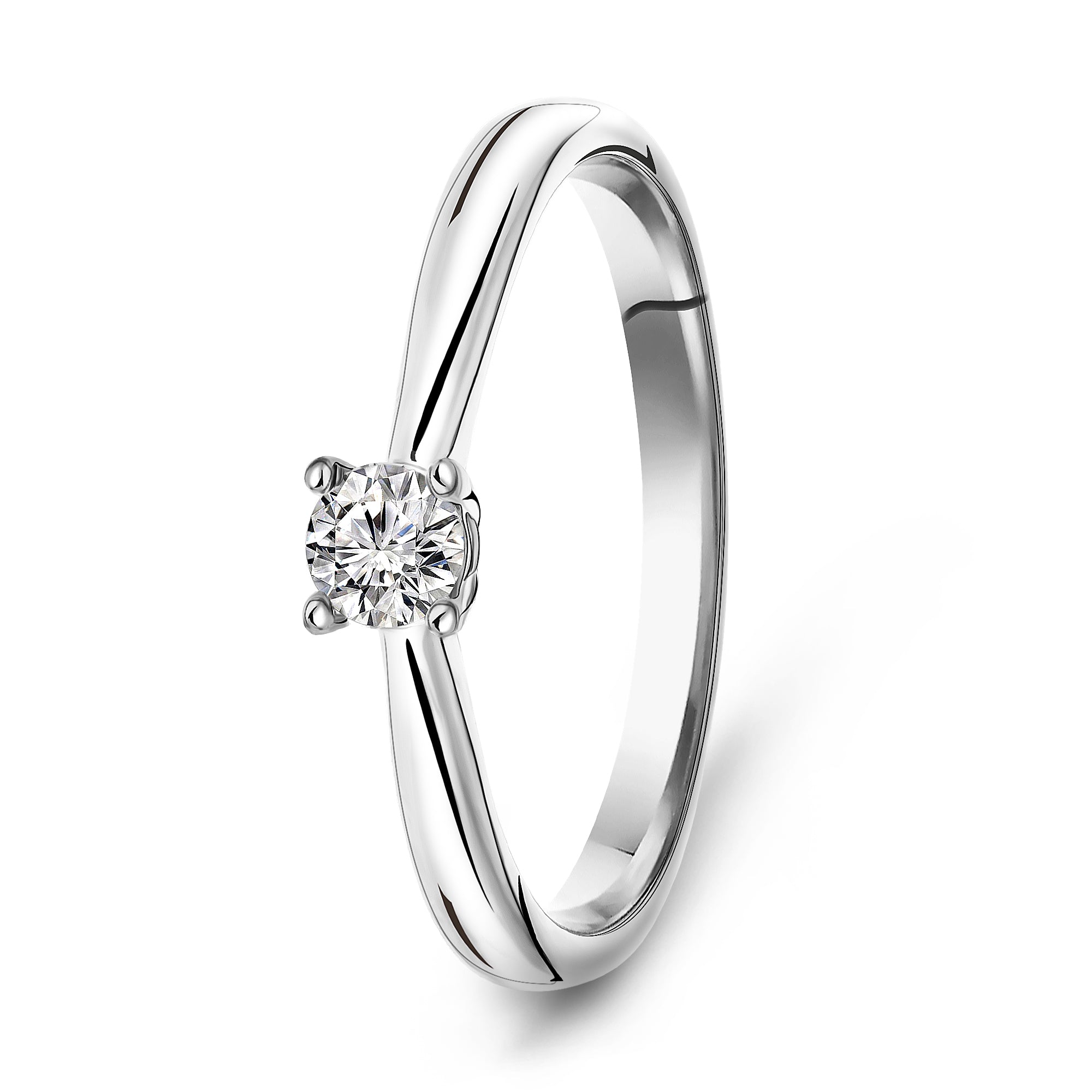 Inel din aur alb de 14 karate cu diamant. Inelul este incrustat cu un diamant taiat briliant cu o greutate de 0,20 ct.