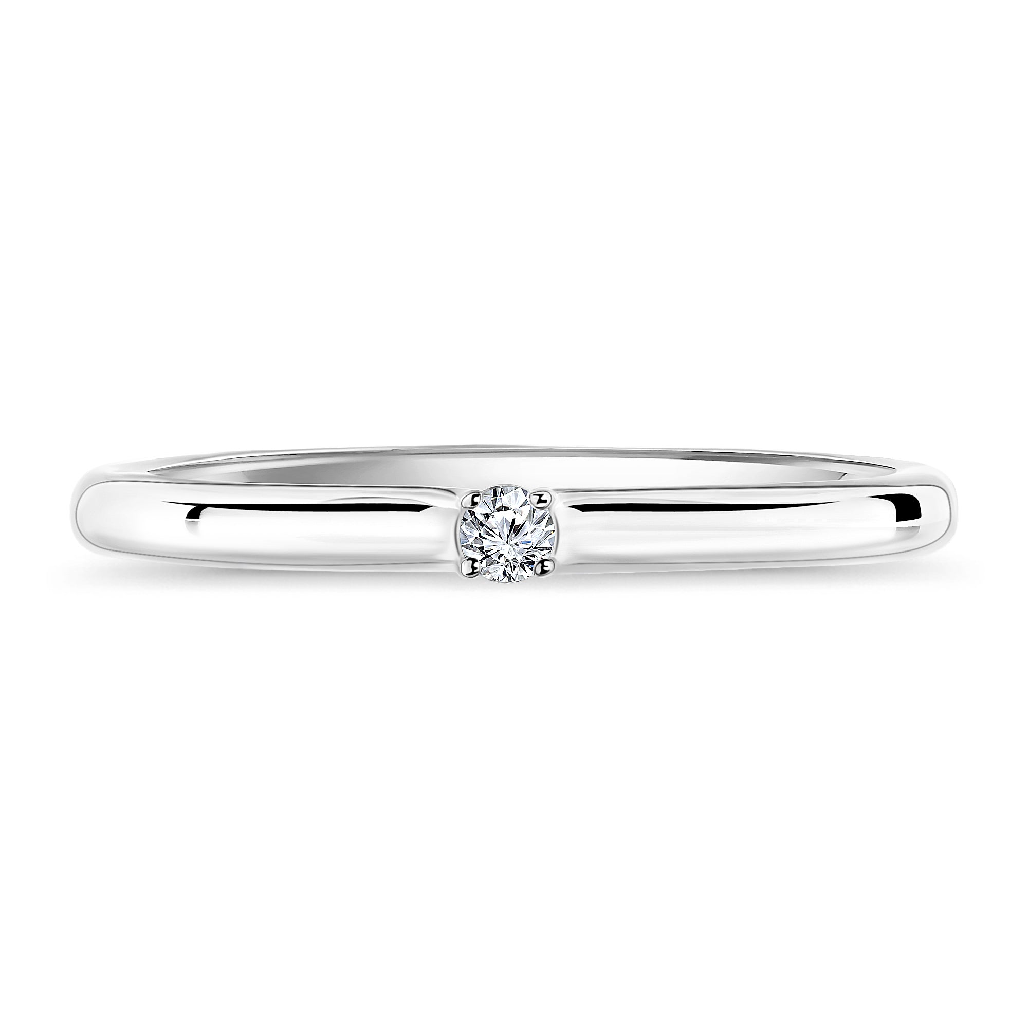 Inel din aur alb cu diamante de 14 karate. Inelul are un diamant taiat stralucitor cu o greutate de 0,05 ct.