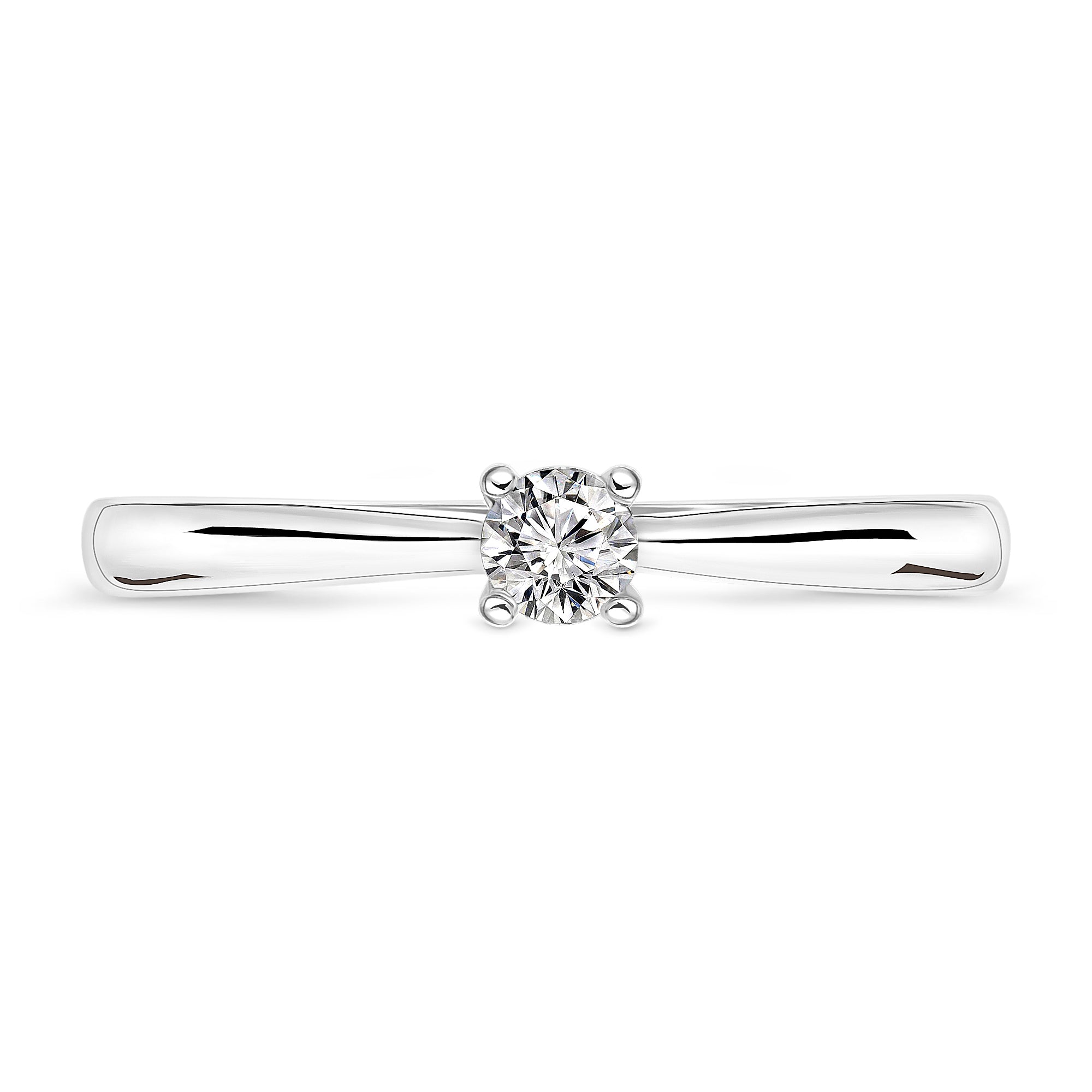 Inel din aur alb cu diamante de 14 karate. Inelul este sertat cu un diamant taiat stralucitor de 0,15 ct.