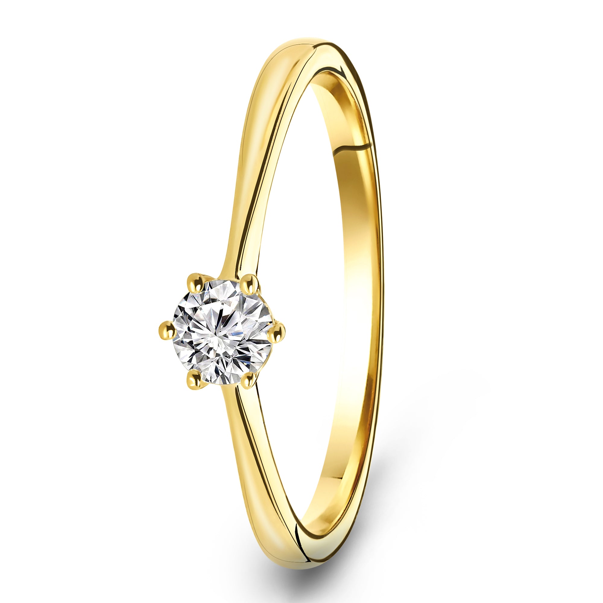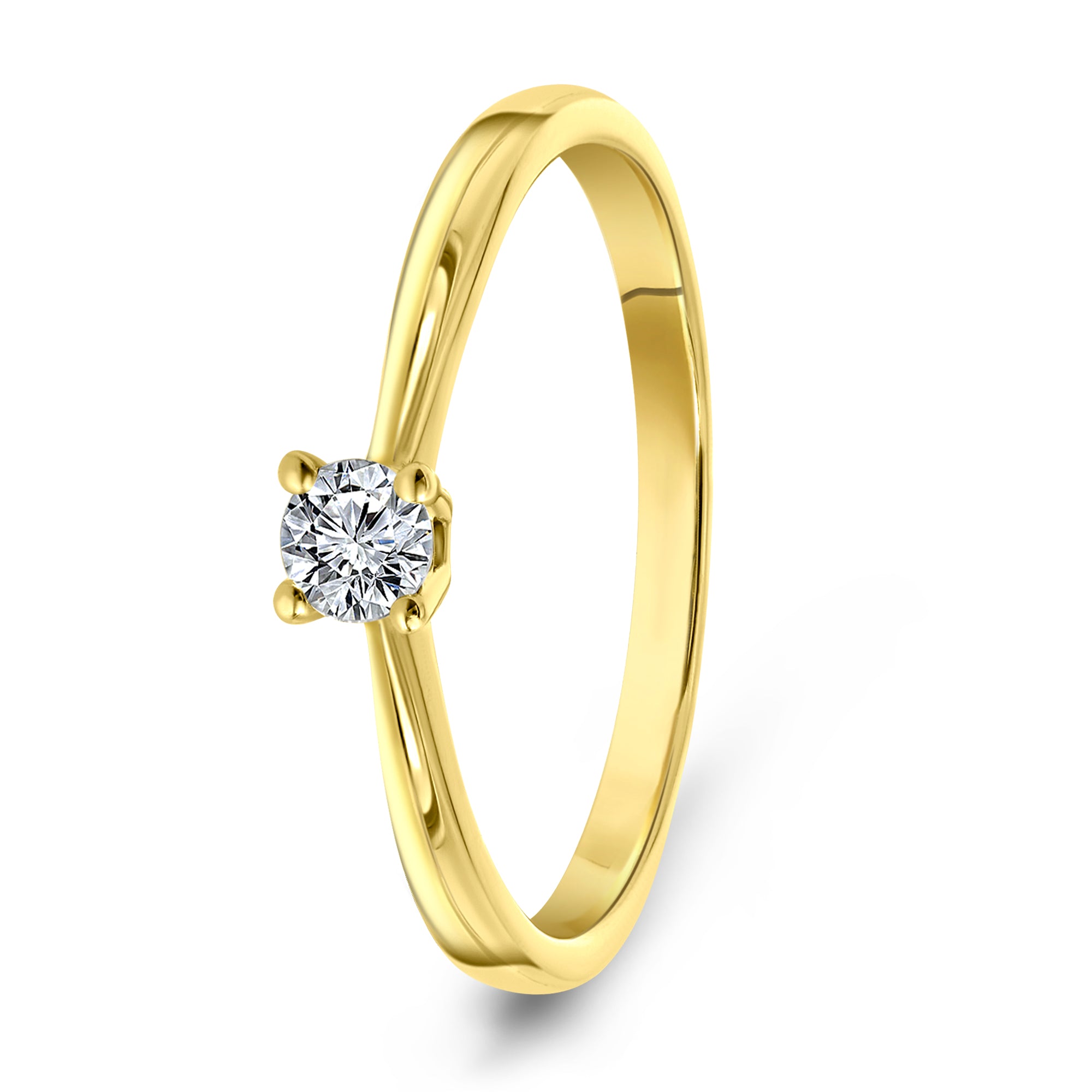 Inel din aur galben de 14 karate cu diamant. Inelul prezinta un diamant taiat briliant cu o greutate de 0,15 ct.