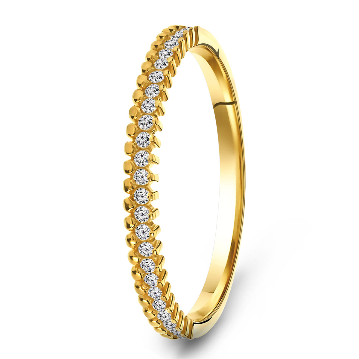 Inele din aur galben din colectia Valentina. Partea din fata a inelului este fixata cu zirconiu alb in chatoni.