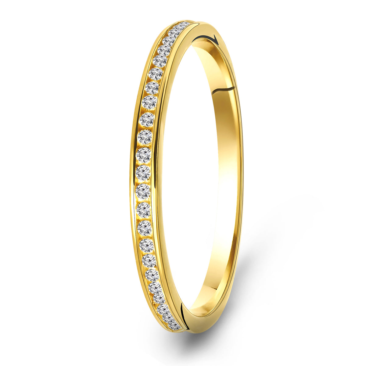 Inel din aur galben de 14 karate. Inelul este fixat cu pietre de zirconiu de jur imprejur.