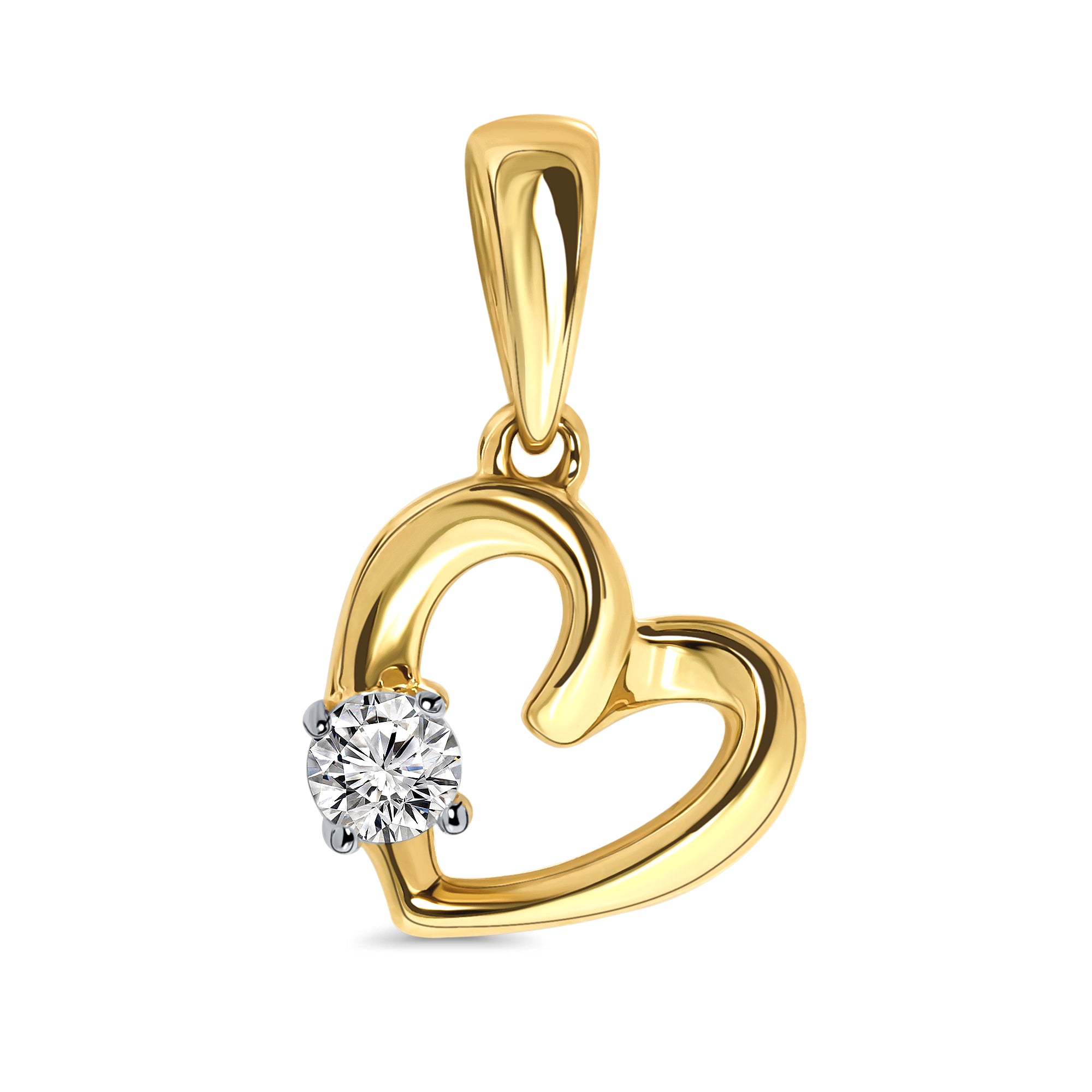 Pandantiv in forma de inima din aur galben de 14 karate din colectia Zirlove. Pandantivul este incrustat cu un singur zirconiu taiat briliant.