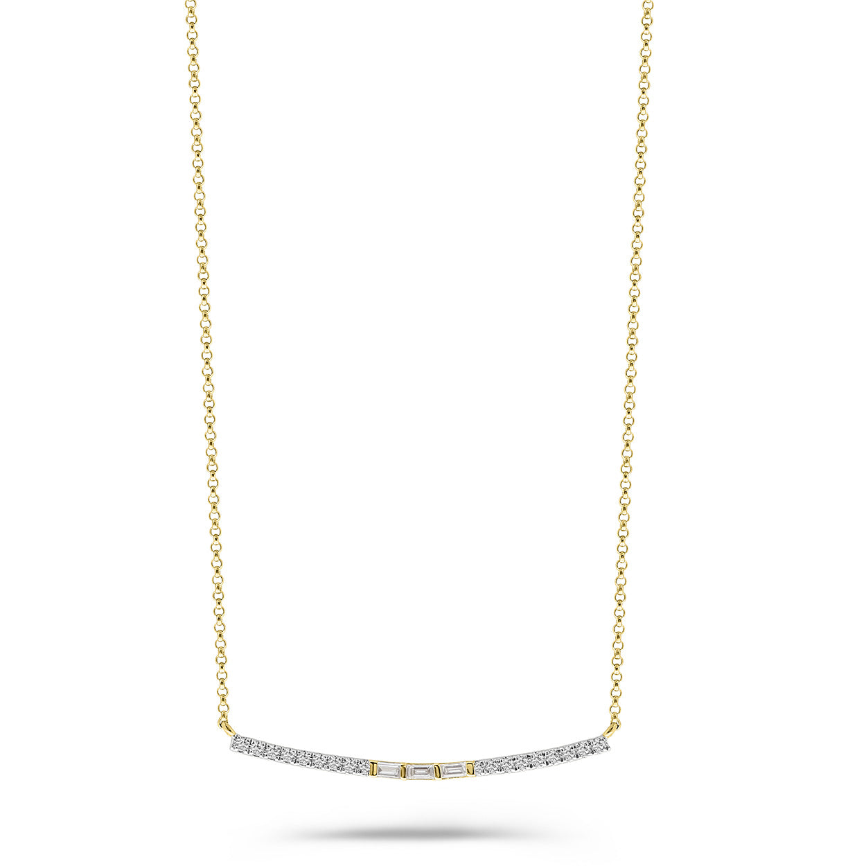 Colier lingot din aur galben cu diamante din colectia ICE. Fabricat din aur galben de 14 karate, colierul are un pandantiv in forma de bara, cu diamante stralucitoare in diferite taieturi, oferindu-i un aspect luxos. Combina colierul cu alte bijuterii din colectie pentru a-ti completa look-ul.