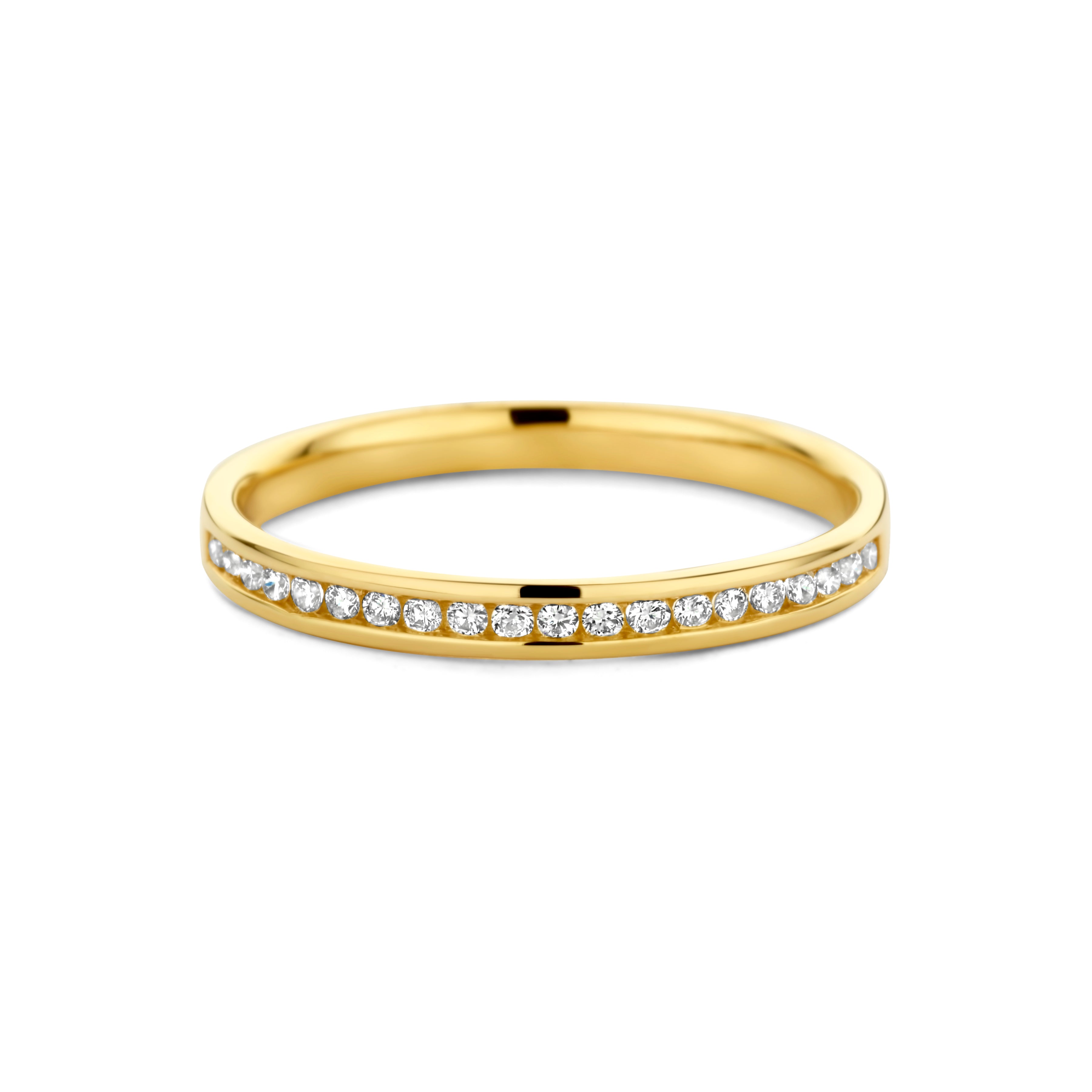 Inel din aur galben cu diamante din colectia Memoire. Fabricat din aur galben de 14 karate, inelul prezinta 20 de diamante uimitoare taiate stralucitor intr-o montura de sina. Asociati acest inel cu alte piese din colectie pentru a va completa look-ul.