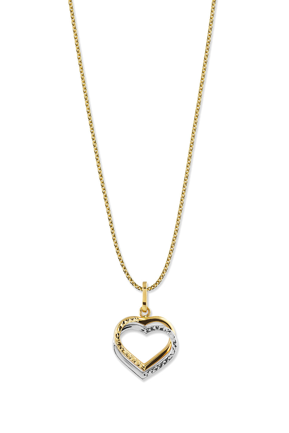 Pandantiv din aur cu inima dubla si zirconiu din colectia Gold by Siebel (cu exceptia colierului).