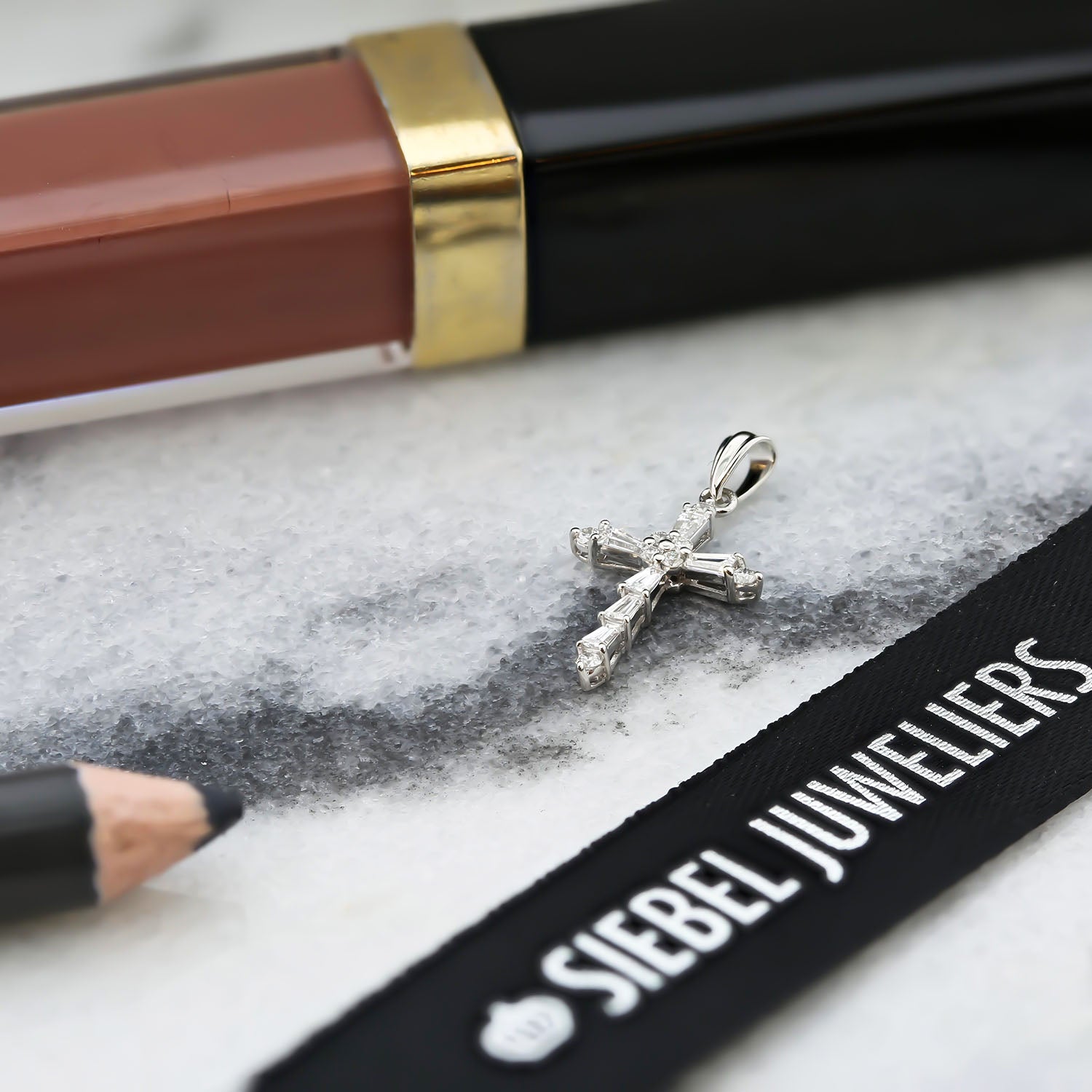 Pandantiv cruce din aur alb cu diamante cultivate in laborator din colectia Millennium. Fabricat din aur alb de 14 karate si sertat cu 14 diamante cultivate in laborator, pandantivul este in forma de cruce.