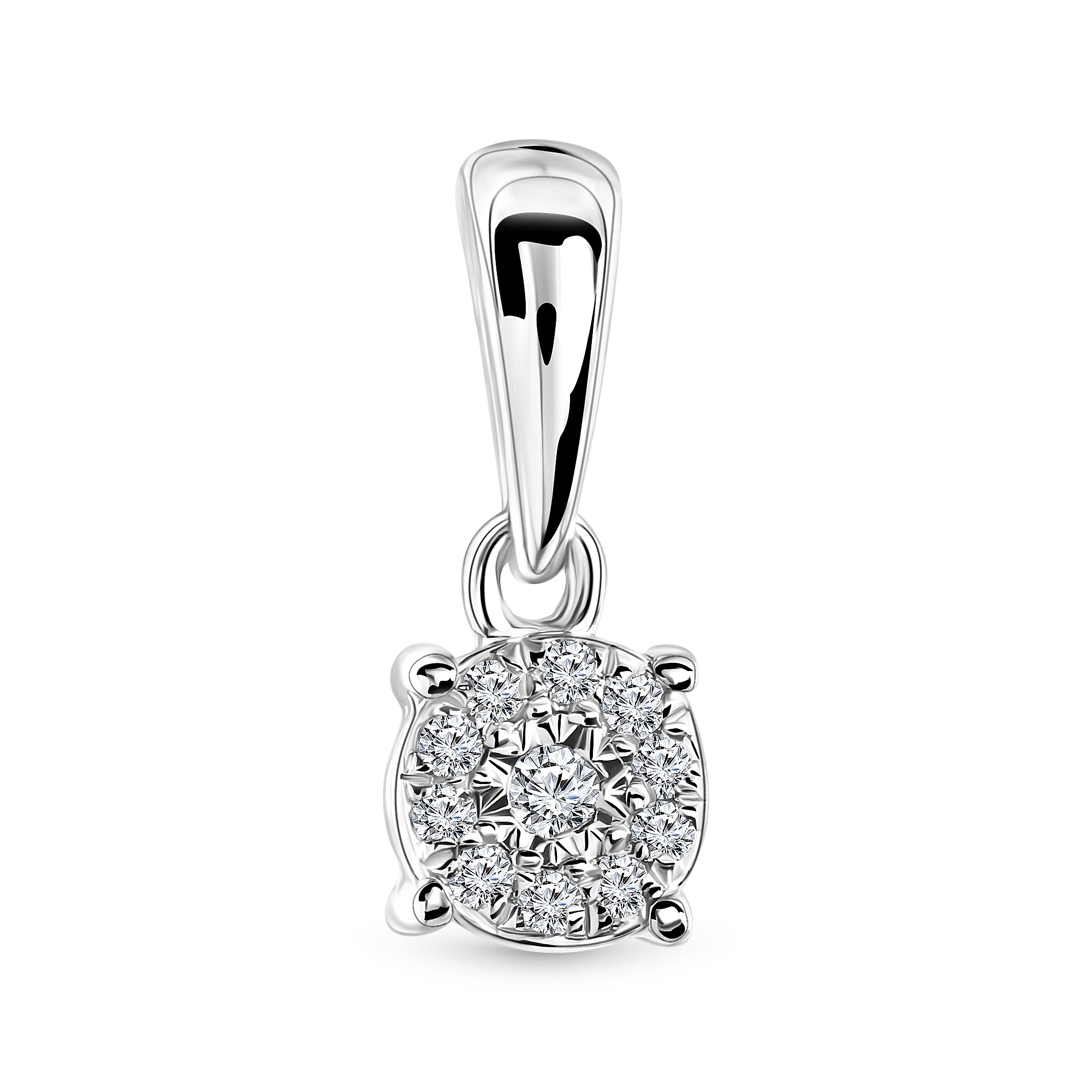 Pandantiv din aur alb de 14 karate din colectia Miracle. Pandantivul este sertat cu 11 diamante taiate stralucitor cu o greutate totala a diamantului de 0,04 ct.