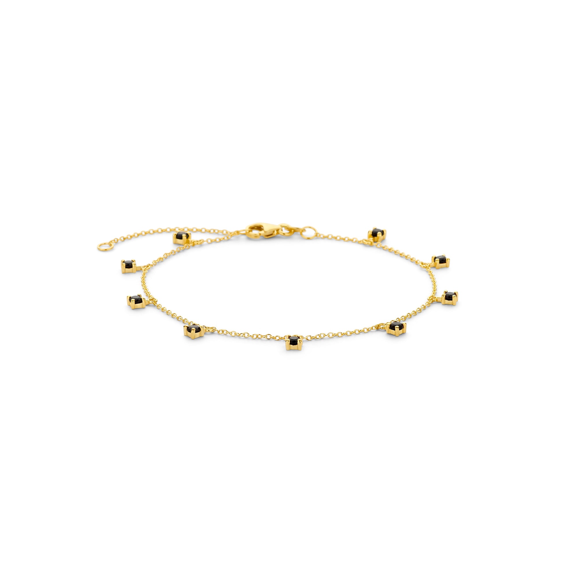 Adauga o nota de eleganta look-ului tau cu bratara noastra fina din aur galben, frumos impodobita cu pietre de zirconiu negru stralucitor. Aceasta bratara emana clasa atemporala si este perfecta pentru orice ocazie. Lasa-te sa stralucesti cu farmecul subtil stralucitor al acestei piese frumoase.