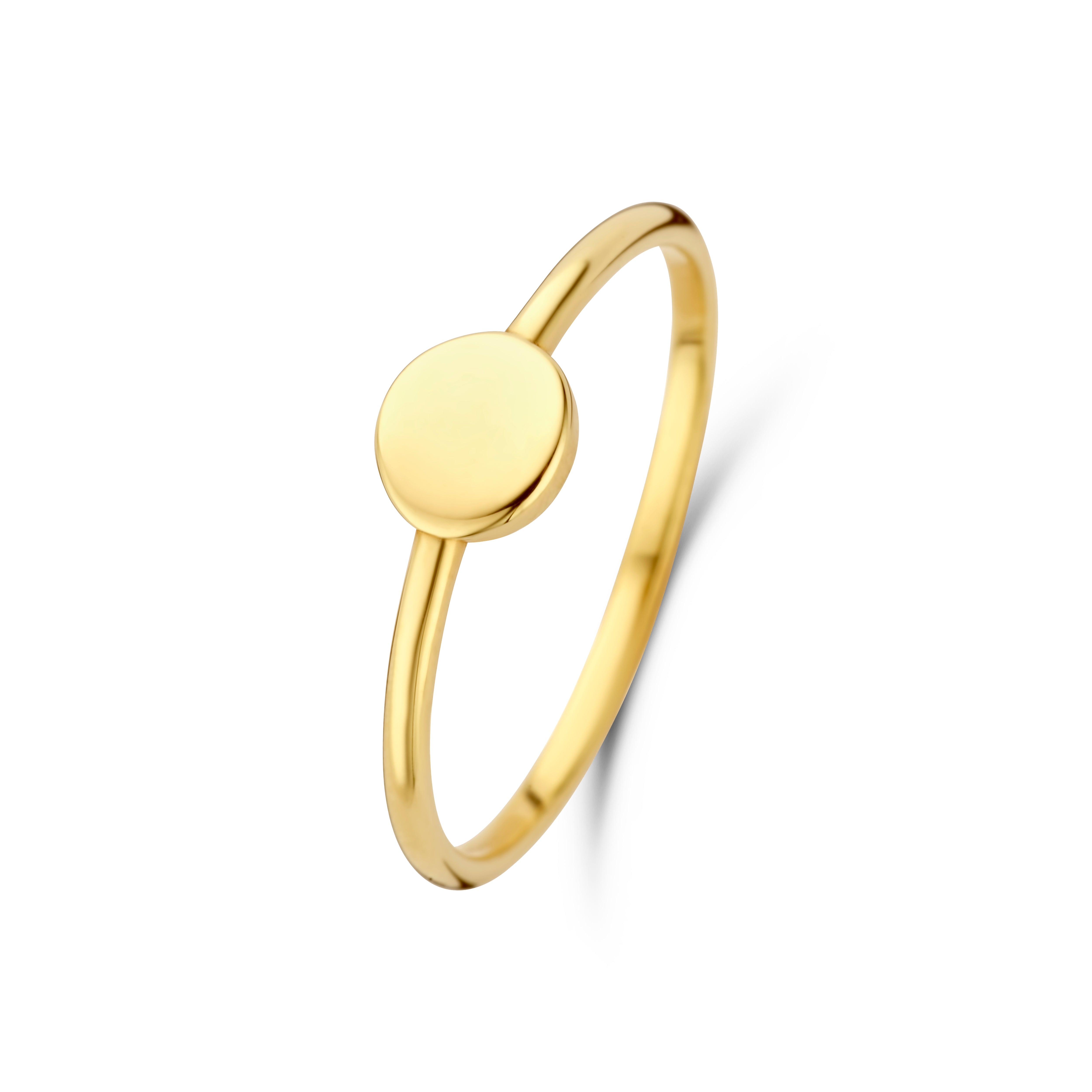 Inel cu sigiliu din aur galben de 14 karate din colectia Sue Ann. Inelul are un disc cu un diametru de aproximativ 5 mm. Se completeaza perfect bijuteriile asortate din colectia Sue Ann by Siebel.