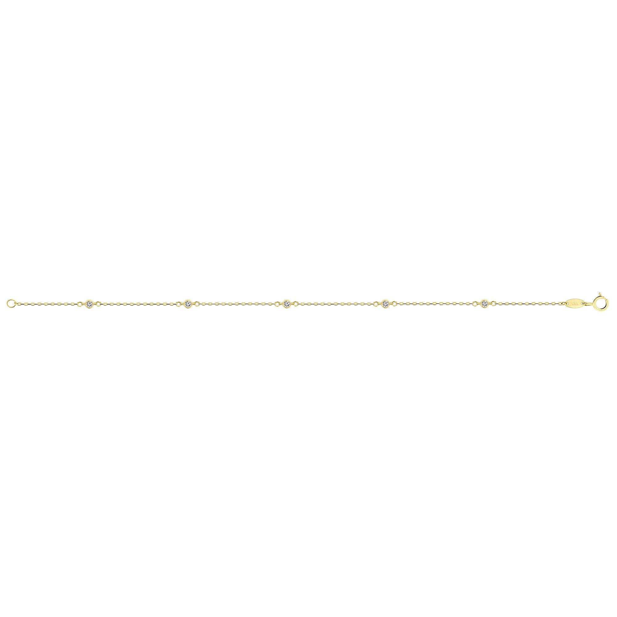 O bratara din aur galben de 14 karate din colectia Valentina. Bratara are zale si un total de cinci setari rotunde, fiecare set cu un zirconiu taiat stralucitor.